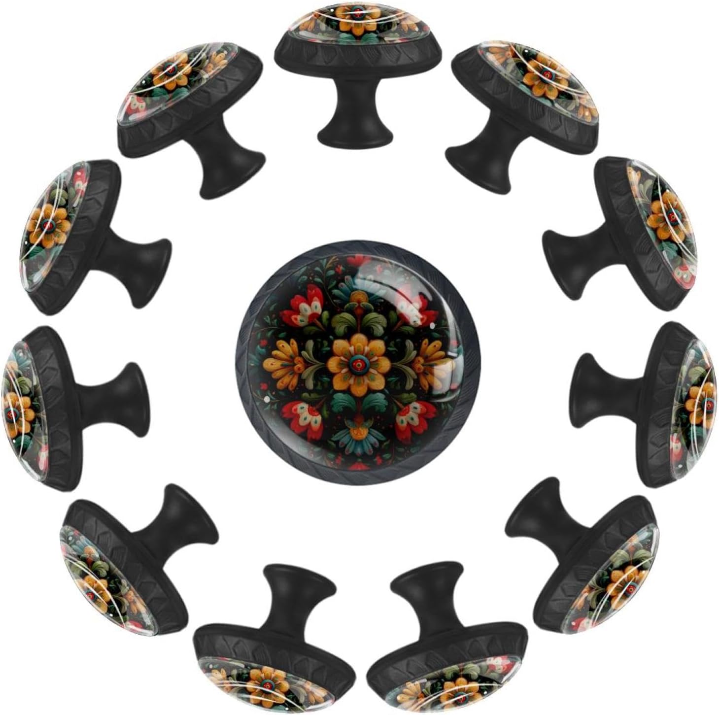Upgrade your home decor with LORVIES Decorative Cabinet Knobs, Drawer Knobs, Cabinet Pulls & Drawer Pulls.Make them part of your home decor!These cabinet hardware & furniture knobs are the perfect size for your cabinets and drawers.The elegant and unique design, featuring diverse decorative patterns, adds a touch of sophistication to your cabinets.Not only are these kitchen cabinet knobs & bathroom drawer knobs functional, but they also elevate the style of any space.Whether it's your living room, kitchen, bedroom, or bathroom, these dresser knobs, wardrobe knobs & cupboard knobs are versatile and complement various decor styles. Product Information Material: ABS, Glass, Stainless Steel, Paper Size: 1.37" (Length) x 0.66" (Width) x 1.1" (Height) Weight: 0.28 Pounds / 0.13KG Base Color: Black Shape: Round with pattern edge Package Include: 12 x Cabinet knobs, 24 x Screws (Short x 12: 1.1" & Long x 12: 1.37") Notice ! ! ! Please measure and confirm the size of cabinet knobs & drawer knobs you need before purchasing. Please be careful when drilling holes. Manual measurements may be slightly inaccurate. Because of each computer display different colors may be related to physical and picture, hope to understand. LORVIES Service Provide you with a worry-free shopping, thank you! Any problems, please feel free to find up to us, we will try our best to help you solve your problems. Customer service time: Monday to Friday (9.00am-6:00pm) (GMT+8)(Due to the time difference, please allow us 24 business hours to get back to you. Thank you!)