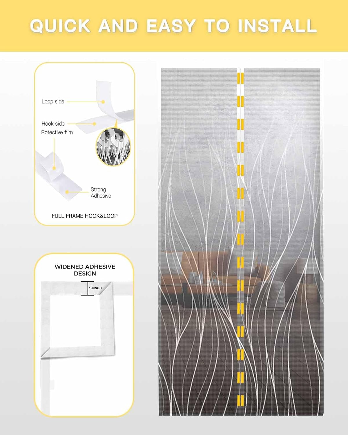 Magnetic Screen Door Middle Opening CurtainIf you prefer to keep your doors open in the summer, have you been looking for a way to keep small animals out and have more exposure to outside air and light, but don't want to install an actual screen door, this seems like an excellent choice.Summer is prime time for lots of light, and with this product, open the front door and let light in while cooking or cleaning downstairs.With this product, dog and cat easily maneuver in and out. Save you the hassle of getting up countless times to let pets in and out.At the same time, malla de pantalla can keep small animals out and let air in.FeatureThis magnetic screen door is made of high quality mesh material. Ensuring strength and durability to withstand daily wear and tear, there is no need to worry about the door screen being damaged in a short time, so you can be sure it will last for many years.The installation of this screen curtain is also very simple. The full frame is sealed to hold the screen in place for easy installation without any special tools or hardware.The door is equipped with strong, high-quality magnets, The magnet strip in the middle is solid and closes very well. Make sure there is no after the door curtain closes automatically.And there is even weights at the bottom to keep it all in place and hanging right.The screen door mesh can be easily opened with a slight push of the head or hand, and screen mesh is easy to get in and out with something on hand. Great for kitchen, patio.Good screen door for keeping out small animals, the tight mesh allows our screen door to block more kinds of "objects", making your summer life cooler and easier.