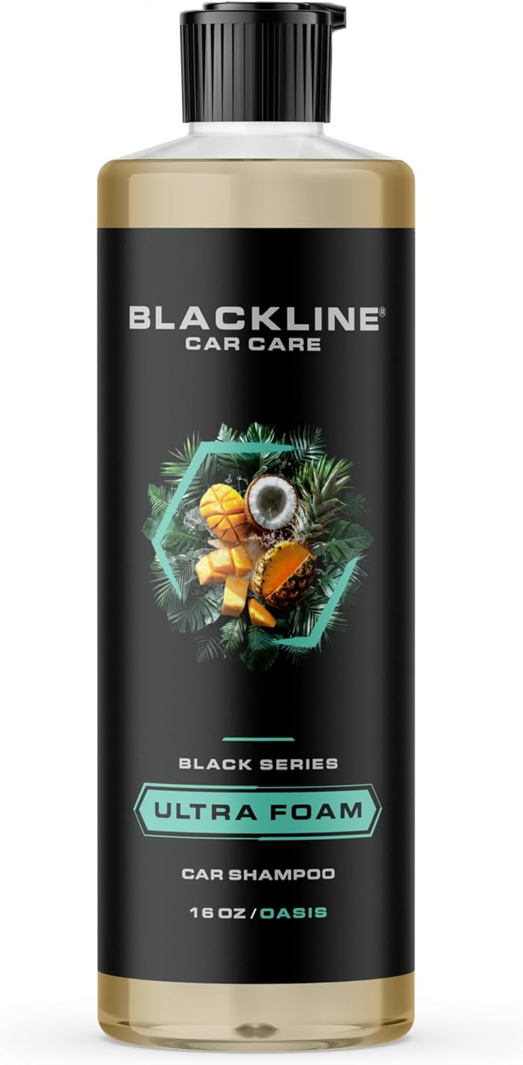 Experience the ultimate in car cleaning with Blackline ULTRA FOAM Extreme Foaming Car Shampoo. Designed to provide a luxurious and highly effective cleaning experience for both you and your vehicle, ULTRA FOAM is the go-to solution for achieving that showroom shine. This high-foaming car shampoo boasts an exceptional foaming formula that effortlessly lifts away dirt, grime, and contaminants from your car's surface, leaving it spotless and ready for further detailing. Whether you're a professional detailer or a dedicated car enthusiast, ULTRA FOAM is engineered to deliver exceptional results. With ULTRA FOAM, you have the flexibility to choose between moderate and maximum foam generation. To achieve moderate foam, simply mix 3-4 ounces of ULTRA FOAM with 16 ounces of water. For maximum foam, increase the ratio to 5-6 ounces of ULTRA FOAM per 16 ounces of water. This versatility ensures that you can tailor your foam generation to suit your specific cleaning needs