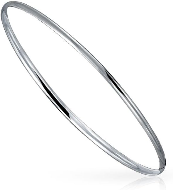 Bling Jewelry Personalized Plain Simple Round Square Flat Edge Layering Stacking Strong 2-3MM Shinny .925 Sterling Silver Bangle Bracelet For Women Teen Customizable