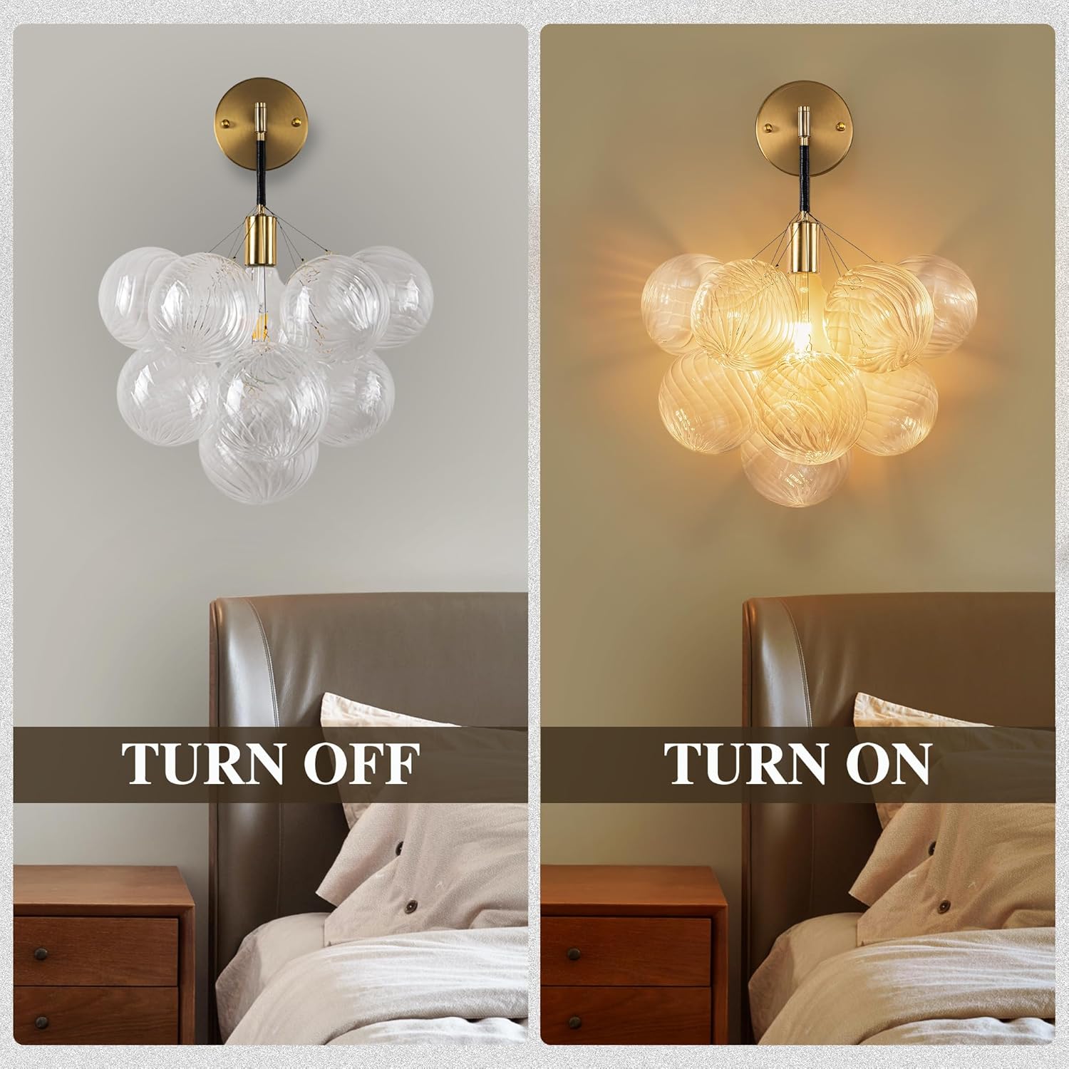 Clear Glass Balls Wall Sconce – A handcrafted blown glass bubble wall sconces that combines beauty and functionality. The clear glass balls shade wall sconce offers soft, warm lighting ideal for bedrooms, hallways, and living areas. Its white wall mounted light fixture design seamlessly blends into modern decor while providing ambient illumination.Easy to install and maintain, this clear glass wall sconces adds elegance to any space. Enjoy hassle-free after-sales support with every purchase.