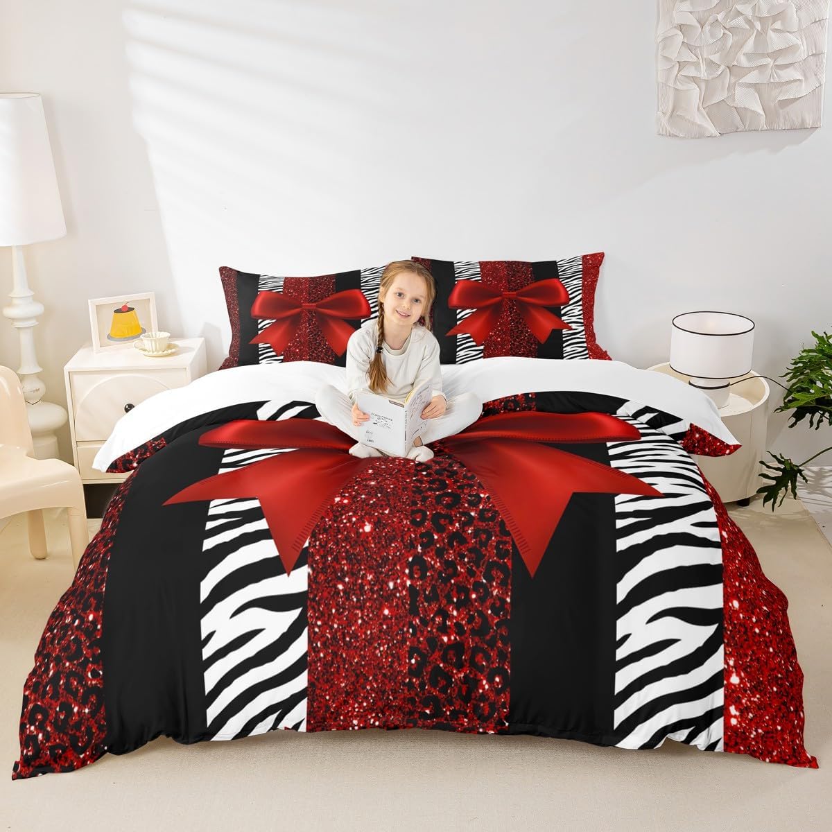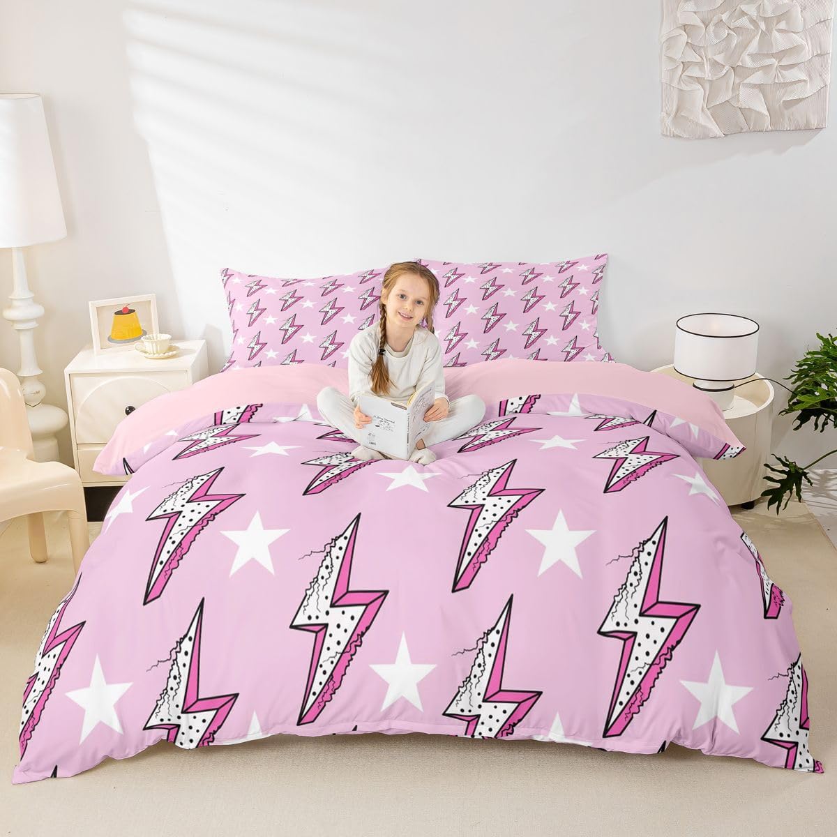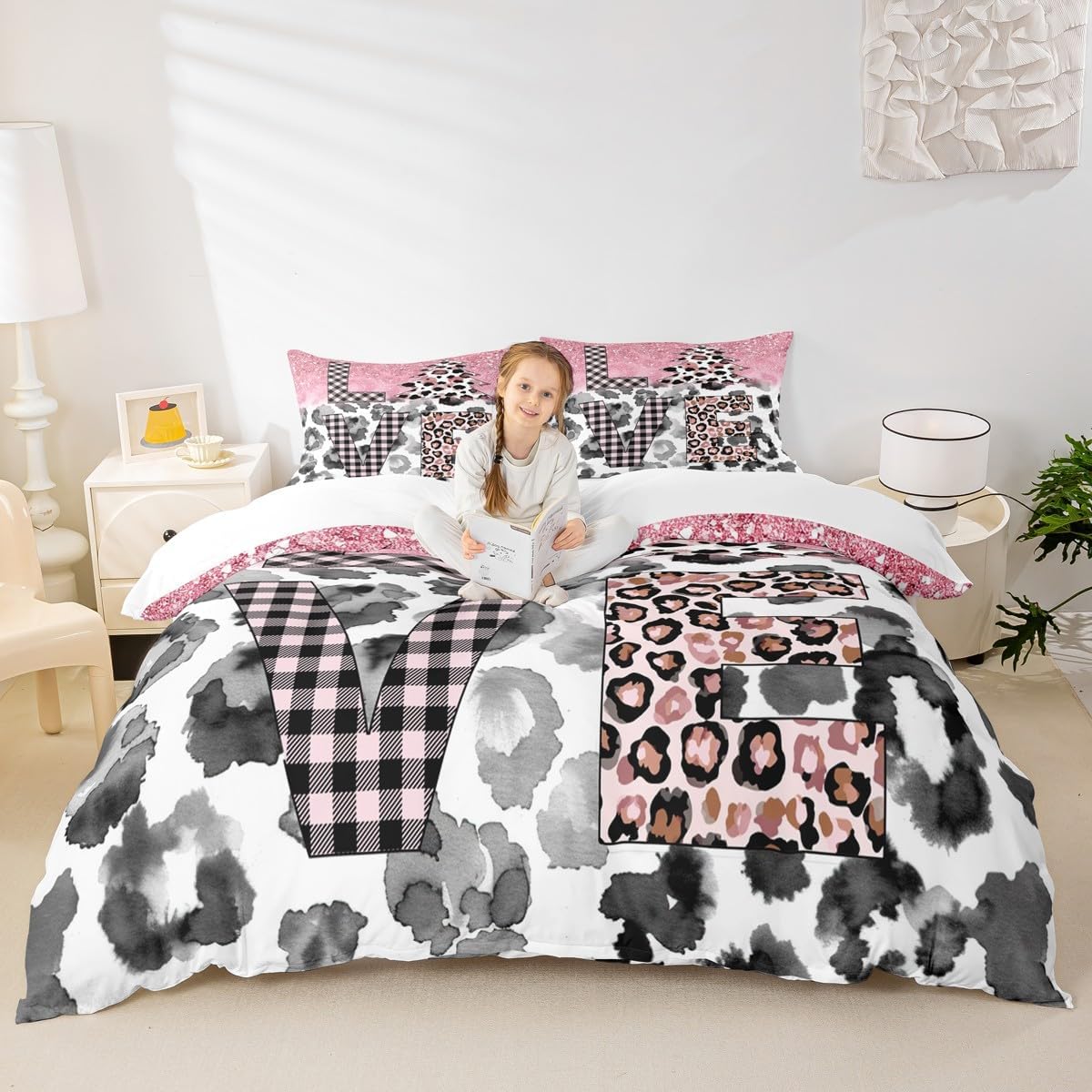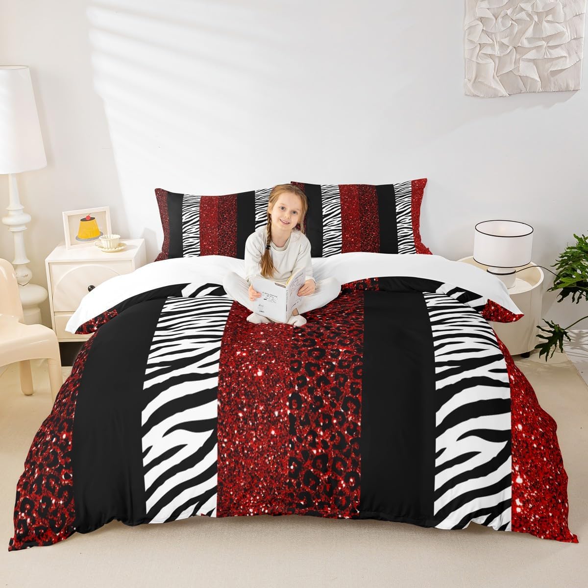 Package Include: Duvet Cover, Pillowcase; High-end Duvet Cover Set Pattern Bedding Set,simply decorating your rooms any time you want, bringing you fresh feel for year round use;Long-lasting:;Made from 100% polyester microfiber,the sheet set offers long-lasting strength, anatural resistance to shrinking and a noticeably soft hand feel;;Size Information::;Twin size : 2 Piece duvet cover set : 1 Duvet Cover 68" x 90",173 x 228 cm , 1 pillowcase 20" x 30",51x75 cm ;Without Comforter;Full size : 3 Piece duvet cover set : 1 Duvet Cover 80" x 90",200 x 229 cm , 2 pillowcase 20" x 30",51 x 75 cm ;Without Comforter;Queen size : 3 Piece duvet cover set : 1 Duvet Cover 90" x 90",229 x 229 cm , 2 pillowcase 20" x 30",51 x 75 cm ;Without Comforter;King size : 3 Piece duvet cover set : 1 Duvet Cover 104" x 90",264 x 229 cm , 2 pillowcase 20" x 36",51 x 92 cm ;Without Comforter;Personalize your bedroom:Beautiful design and colorful print, makes your bedroom unique and brings you a wonderful dream;Washing instructionsMachine wash separately in cold water,hang dry, do not bleach;Occasion:The cute soft duvet cover bedding sets designed for Children ,Adult, Men, Women, Teens; This duvet cover set is also suitable for full seasons, Spring, Summer, Autumn and Winter;
