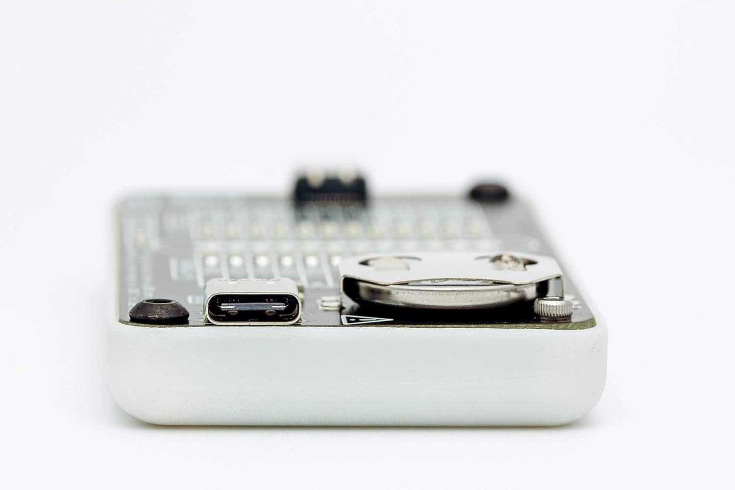 The C2C caberQU v3 board tests the voltage and connectivity of USB-C cables. It features 25 LEDs to indicate the possible pin combinations for USB-C receptacles in different modes: USB 3.0/3.1, USB 3.2/4, USB 2.0/1.1, USB Power Delivery, Alternate Mode, Debug Accessory Mode, and Audio Adapter Accessory Mode. This battery-powered, modern USB cable tester has dimensions of 4.5 cm length and 45 mm width. It is model number C2C.