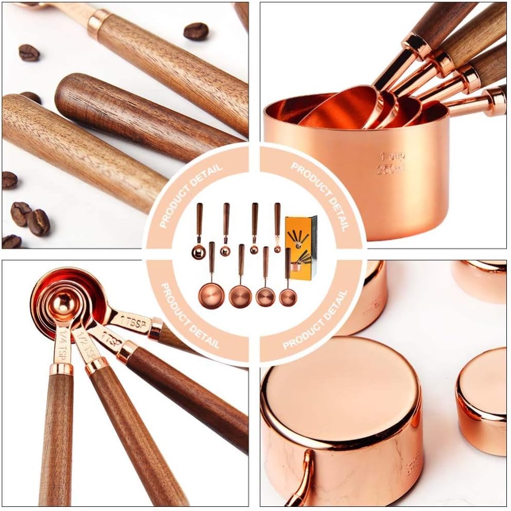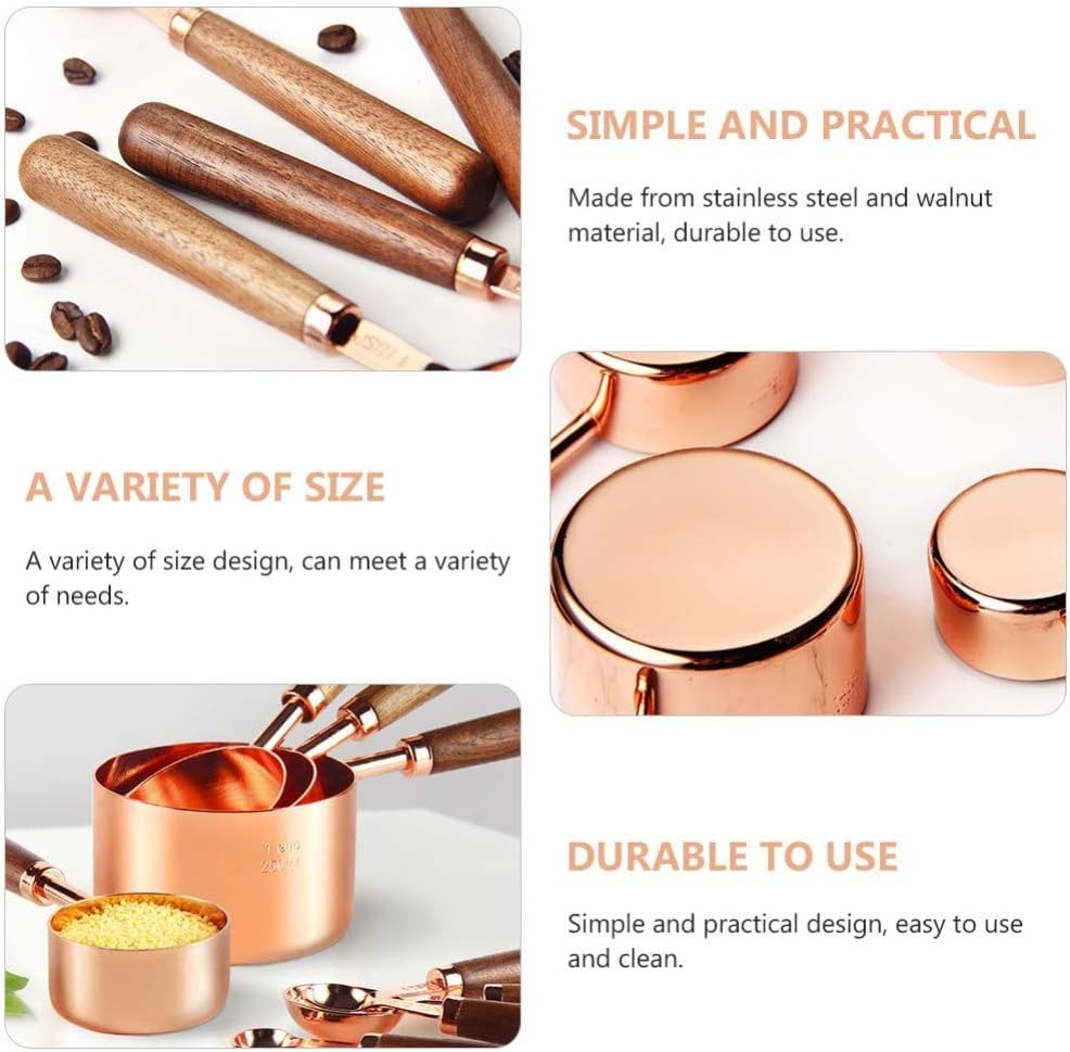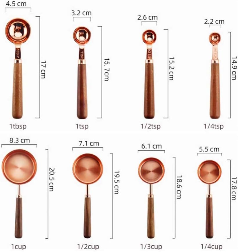 Description 8pcs Stainless Steel Measuring Spoon Metal Measuring Spoons Kitchen Gadgets Tools Utensils for Cooking Baking Rose Gold Features- Colour: Rose Gold.- Material: Walnut, stainless steel Package Including 4pcs measuring cups 4pcs measuring spoons