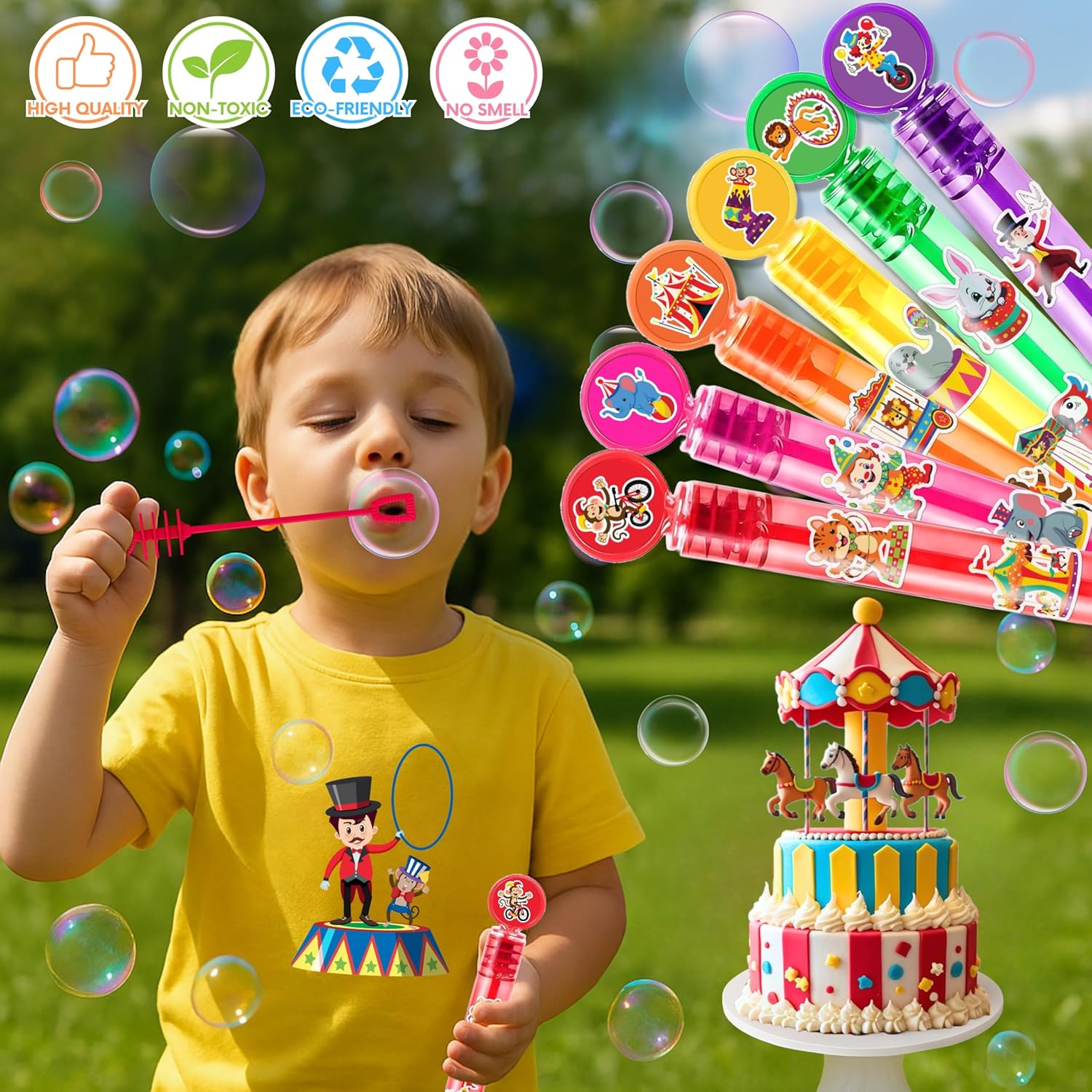 CARNIVAL PARTY FAVORS: Bring colorful carnival fun to your celebration with this set of 24 carnival themed bubble wands featuring circus inspired designs and bright festive colors. Perfect for carnival birthday parties classroom celebrations and kids events PERFECT GOODIE BAG FILLERS: These mini bubble wands fit perfectly into carnival themed goodie bags party favor sets classroom reward boxes and treat bags. A fun gift kids will enjoy FUN FAIR THEME DESIGN: Each bubble wand features playful carnival and circus inspired designs making them ideal for fair themed parties and celebrations for boys and girls SAFE AND DURABLE MATERIAL: Made from child safe durable plastic with leak resistant design suitable for indoor and outdoor carnival themed celebrations READY TO GIFT PARTY SUPPLIES: No assembly needed. These bubble wands are ready to use and help parents and teachers prepare carnival parties quickly and stress free DEDICATED CUSTOMER SUPPORT: Have any questions? Our friendly team is here to make your carnival celebration full of excitement and smiles!