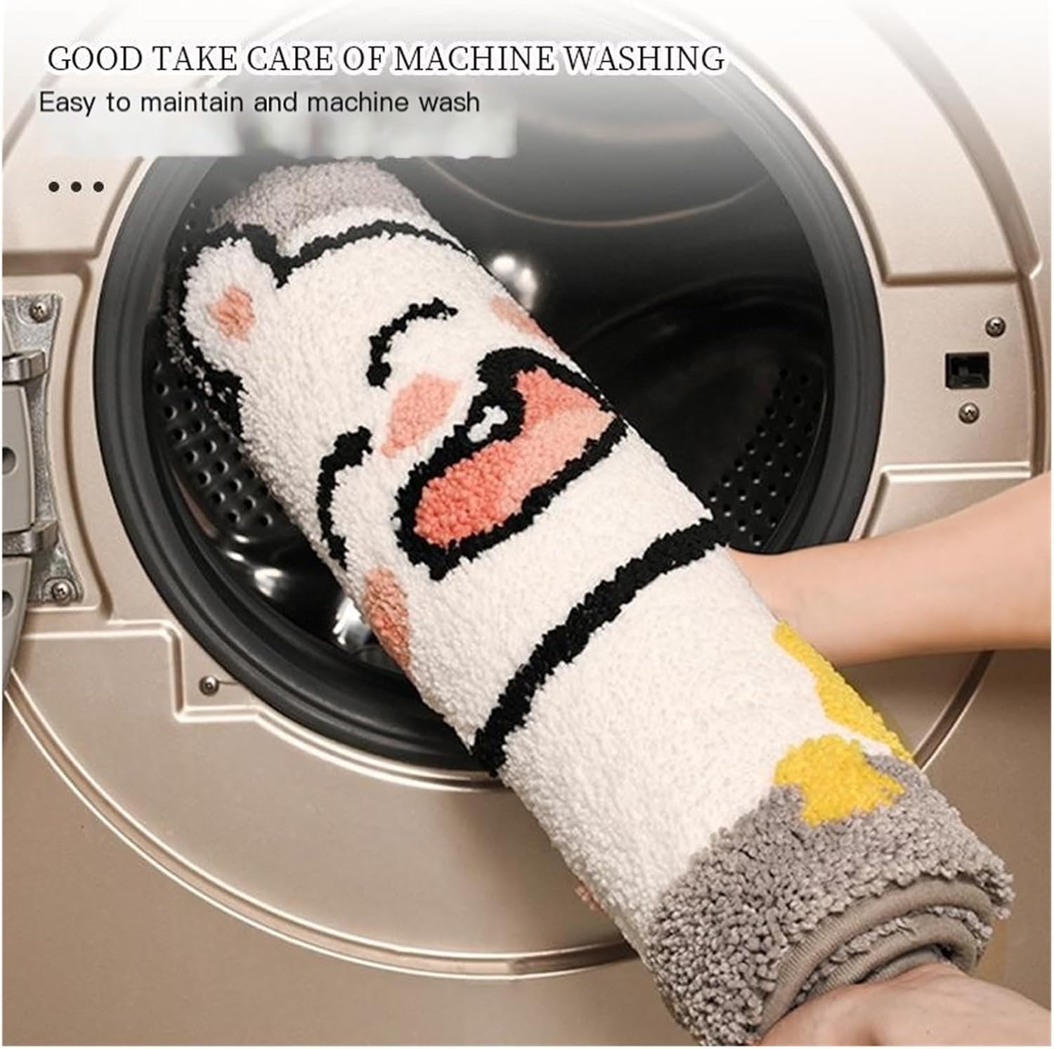 Material: Polyester fiber (polyester)Process: FlockingStyle: CartoonCleaning type: Water washShape: RectangleColors: Pink duck, gray bearSizes: 40*60cm, 50*80cmWeight: 432g, 505g