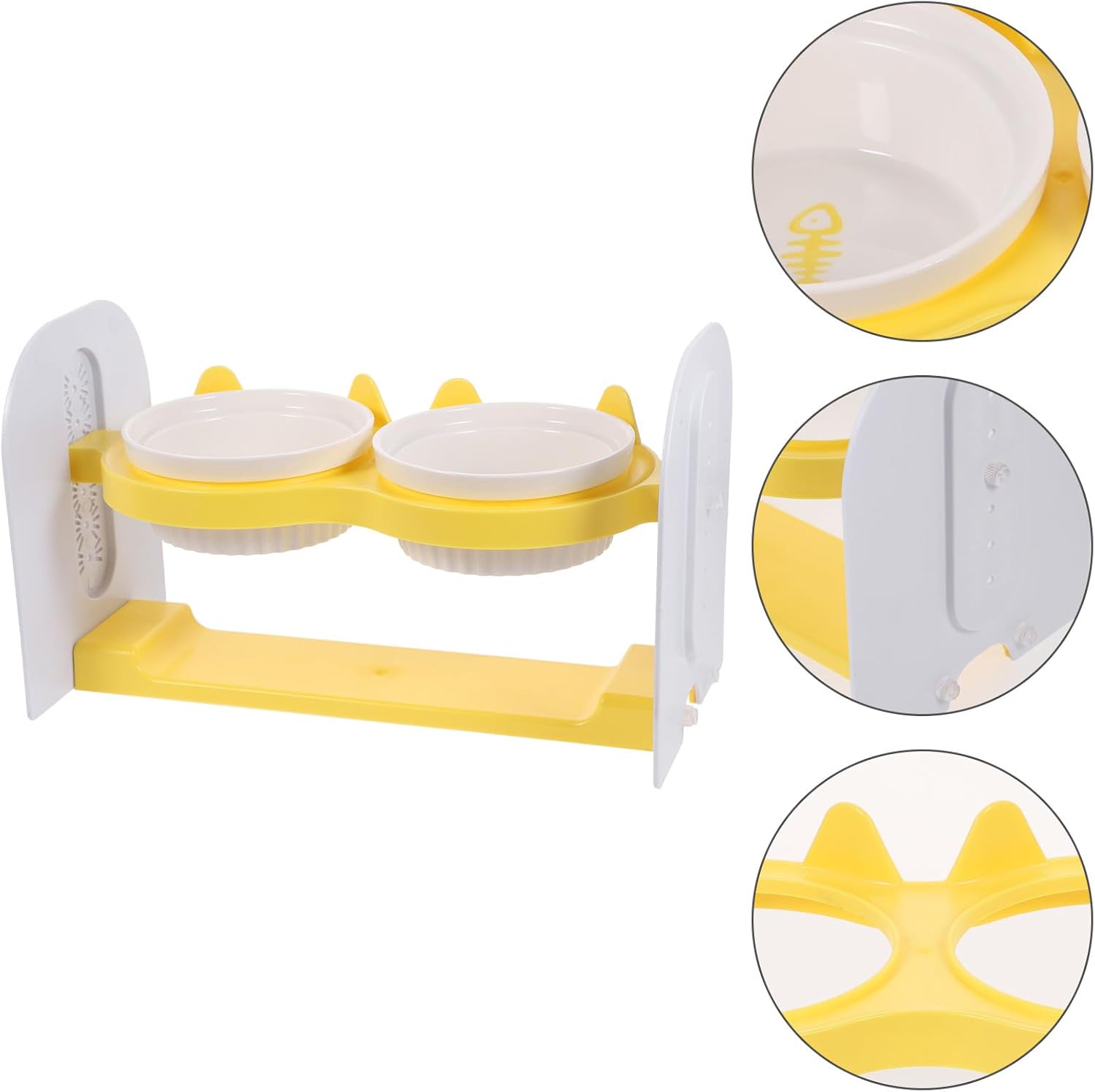 Package Include 2 x Bowls 1 x Bowls Holder Features - Color: Yellow(rack), white(bowl) -Material:Ceramic -Product Info:Ceramic pet bowl - Size: 33.00X16.00X19.00cm/12.97X6.29X7.47in -The water bowl is big enough, you can pour enough water into it, and a day free of concerns about the shortage of water ceramic cat food bowls. -Simple to use, and detachable design make it convenient for you to use and feeding station. -This pet feeder is suitable for cats, dogs, rabbits, and other pets ceramic cat bowl. -This feeder can come true the food feeding and water feeding at the same time, and the helps protect the pet's neck health ceramic pet bowl. -The material of this pet double-use feeder makes it bite-resistant, -resistant, and safe for your pet.Goods Informationpet water bowl This Pet Bowl won't be knocked over by your pets, convenient non-slip bowl for secure seating.pet bowl ceramic Use it as a food or water container each time, and you can save up space in your room.ceramic small animal food bowl Safe, wear resistant, thickened design, good bite resistance.ceramic cat dishes Smooth surface, rounded edge design, easy to clean,