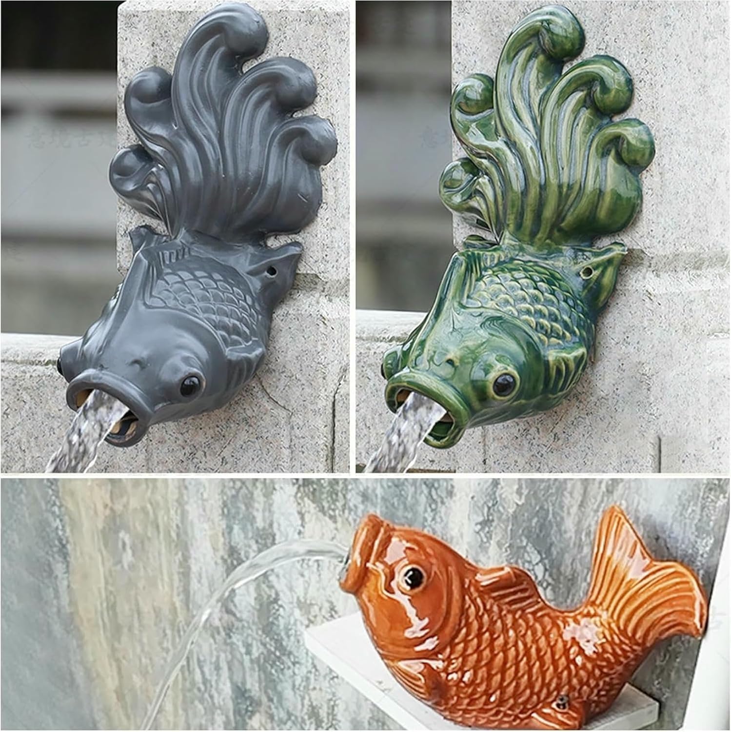Bring the timeless charm of koi fish to your outdoor space with this Ceramic Koi Fish Pond Spitter. Revered as a symbol of good fortune, perseverance, and harmony, the koi adds positive energy and elegance to gardens, patios, and koi ponds.Crafted from high-quality weather-resistant ceramic, this pond spitter is fade-proof and built to endure sun, rain, and seasonal changes, ensuring beauty all year round. Its lifelike detailing and gentle flowing water create a soothing focal point that enhances the atmosphere of any outdoor setting.Designed for versatility, it fits perfectly in ponds, courtyards, terraces, lawns, balconies, and other landscapes. Installation is simple—just connect a water pipe (diameter under 5cm) through the wall into the koi body and secure it with cement, tile adhesive, or screws. A flat wall area of at least 15×15 cm is required for mounting.Upgrade your garden with a piece that combines art, symbolism, and functionality—bringing serenity and prosperity into your outdoor living space.