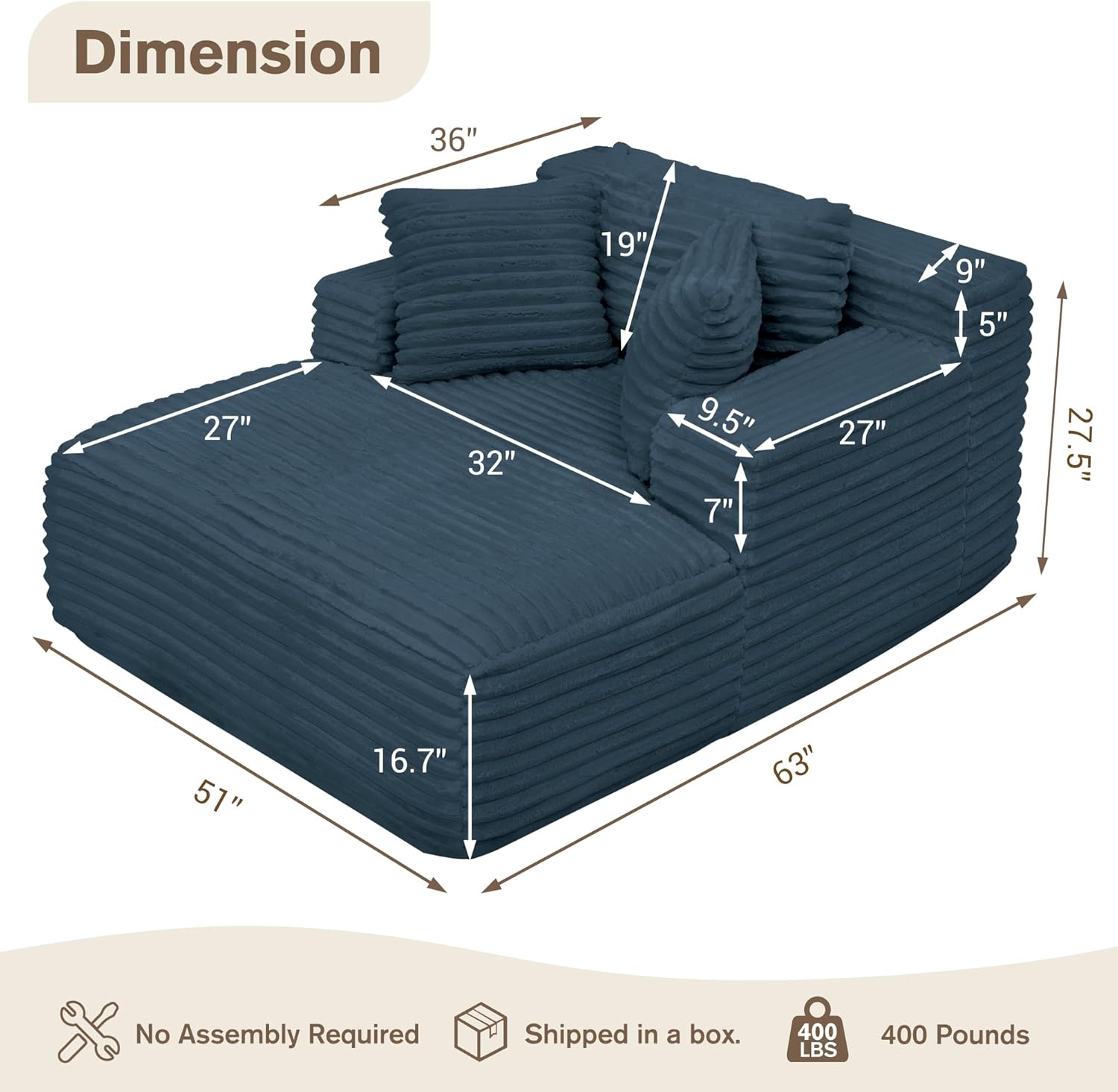 | Item Dimensions D x W x H | 63"D x 51"W x 27.5"H |
