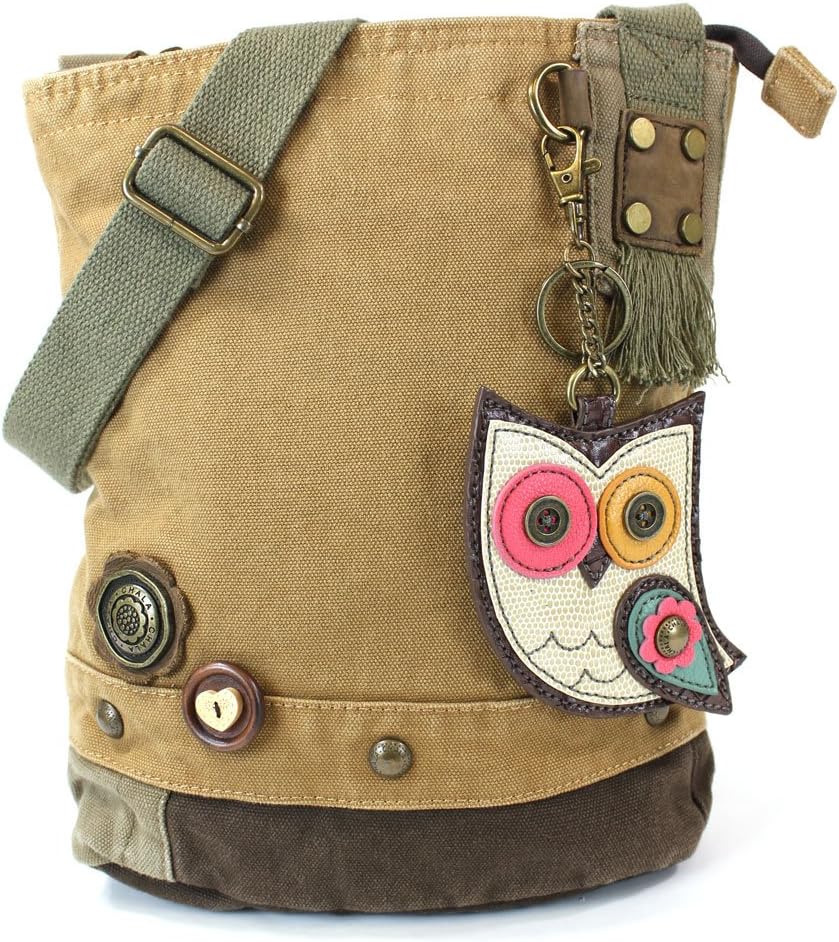 Chala Canvas Denim Tote Shoulder or Messenger in with Owl Coin Purse/ Key fob