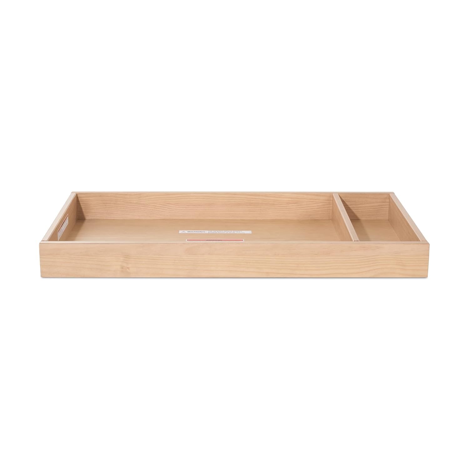 The Child Craft Legacy Changing Table Topper converts the surface of your Child Craft dresser unit into a safe, convenient, and space-saving dressing and diaper changing surface. The side compartment of the Child Craft Legacy Changing Table Topper provides storage for baby’s diapers, lotions, and other baby changing supplies you might need easy access to. The construction of the Child Craft Legacy Changing Table Topper is made of highly durable pine wood and a felt liner. The Child Craft Universal Changing Table Topper is available in a variety of non-toxic finishes to match your Child Craft nursery dresser, including Coach Cherry, Cocoa Bean, Lunar Gray, Crescent Gray, Cool Gray, Nutmeg, Slate, Toasted Chestnut, and Matte White. Compatible contour pad, model #F04014.44, for the Child Craft Universal Changing Table Topper is sold separately, and does not come included with this purchase. The Child Craft Universal Changing Table Topper arrives fully assembled. The assembled dimensions of the Child Craft Universal Changing Table Topper are as follows: 42.5" L x 18.25"W x 4" H. This product has a weight of 17 pounds.