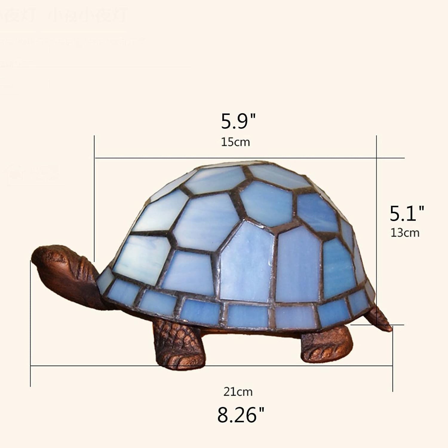 ●Children's Night Light,Tortoise/Turtle Lamp Bedside Table Lamp,Tiffany Style Stained Glass Accent Desk Lamp,Kids Gifts,E27●Shade material:Tiffany style stained glassVoltage: 110~240VLamp specifications: E27Lamp holder material: zinc alloy●Suitable for:children bedrooms, corridors, living rooms, study rooms, nursery, kindergarten, Bedside table,Bedside,Desk side,desk etc.Craft: handmade●Product size: 5.9"*5.1"*8.26" / 15CM * 13CM * 21CMProduct packaging: 1 blue tortoise table lamp (without light source)Packing volume:27.5 cm * 24.0 cm * 18.5 cmWeight: 1.5KG●AMAZING ARTISTIC WORK: The beautiful glass-work on this Tiffany bedside table lamp is simply unrivaled. Wherever it is used, it is simply amazing. This tiffany Nightstand lamp is great artistic piece that speak to the soul.●MAGICAL HOME DECOR: If you have an aesthetic appreciation and likes to add something beautiful in your home, then you will always find a place in your home where you can incorporate this Tiffany tortoise /Turtle night lamp.