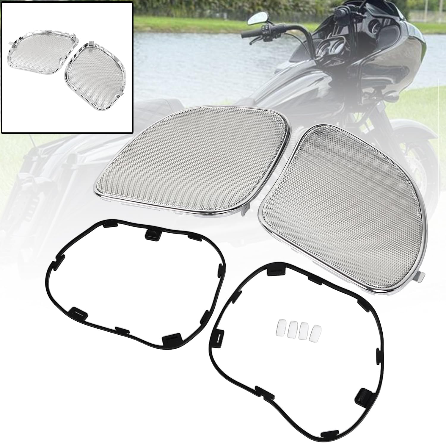 Feature:Aftermarket 100% brand newType: Speaker Grill CoversPlacement on Vehicle: FrontColor: ChromeMaterial: Metal Inner Mesh + ABS Plastic Outer GrilleMesh separates easily from trim for painting, powder coating, etc.Grilles can be used with most brands of speakers.Installation instructions not included.Fitment:Fit For Harley Road Glide FLTRX 2015-2023Package Included:2 x Speaker Grill Covers (As Picture Shown)