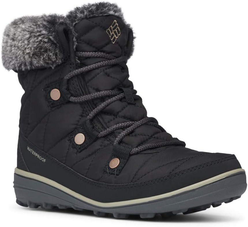 A stylish contemporary short-top snow boot designed for women with expert craftsmanship, the Columbia Heavenly Shorty Omni-HEAT Boot is the ultimate protection for snowy cold weather wear. High quality materials are first and foremost on Columbia's list of requirements when designing and creating women's footwear. These boots combine advanced technology with comfort seamlessly, while remaining lightweight and stylish. Columbia's signature technology is what sets this boot apart, delivering high-quality cushioning and ultimate protection from the elements. These snow boots feature a waterproof woven synthetic textile designed to protect from rain, snow and sleet. With the waterproof construction, lightweight material, and non-marking traction rubber outsole, this women's snow boot will keep you comfortable and warm on any cold winter day. Columbia offers these women's hiking boots in two colors, with true-to-size fit. Imported. Synthetic textile upper. Laced closure. Hand Wash. Columbia offers a wide variety of outdoor performance footwear, outerwear, sportswear, and accessories. Columbia products are engineered using the best technologies and highest quality materials, providing you with innovative products that are functional yet stylish and a great value.