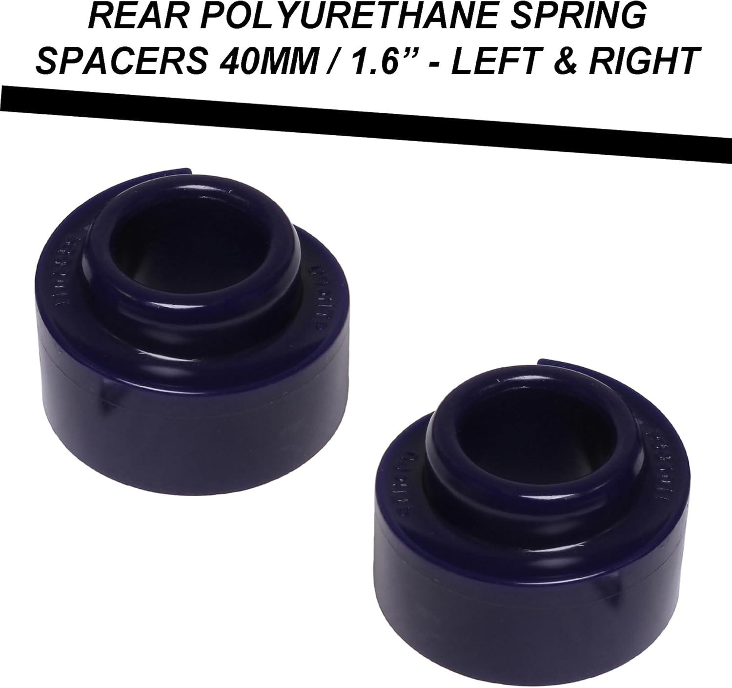 | Included Components | 2 pcs x Front Polyurethane Strut Spacers - 40 mm / 1.6" - Left & Right, 2 pcs x Rear Polyurethane Spring Spacers - 40 mm / 1.6" - Left & Right, 2 pcs x Rear shock Extenders Bolts - Left & Right, 6 pcs x Bolts - Longer Strut Bolts - Left & Right, KIT INCLUDES: 12 Pieces - Brand New - Superior Quality |