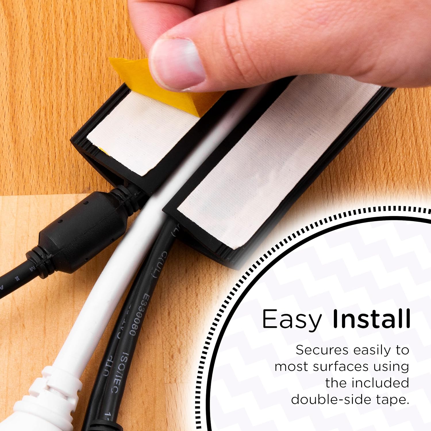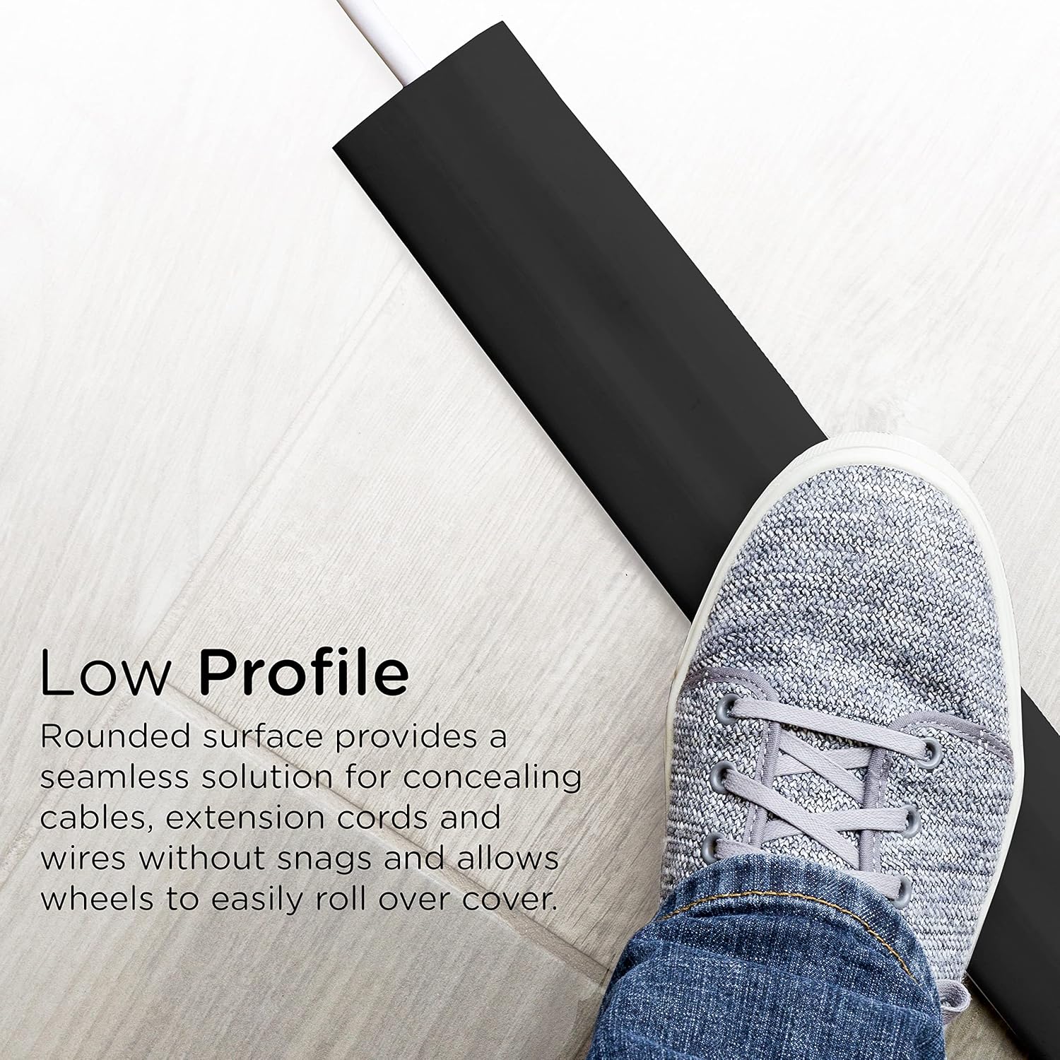 Product Description Cordinate Floor Cord Covers are designed with safety and performance in mind. While most cable management creates an unsightly obstacle, this cord cover’s tapered design, narrow width and 6ft. length provides a discreet, low-profile appearance that reduces the chance of tripping without being obstructive. The black finish ensures the cord hider blends in seamlessly with the existing décor of any home, business, office, event space, warehouse, workshop or classroom. You no longer need to choose between style and function. The durable cover is made from a resilient PVC engineered to provide safety and security. It is easily cut to any desired length to accommodate a variety of spaces. This all-in-one package also includes double-sided tape to make your installation quick, easy and reliable. Simply slide wires, cables and cords into the split bottom of the unit and secure to the desired surface. Hide unsightly cords and cables safely with Cordinate Floor Cord Covers. From the Manufacturer Organizes cords across open areas