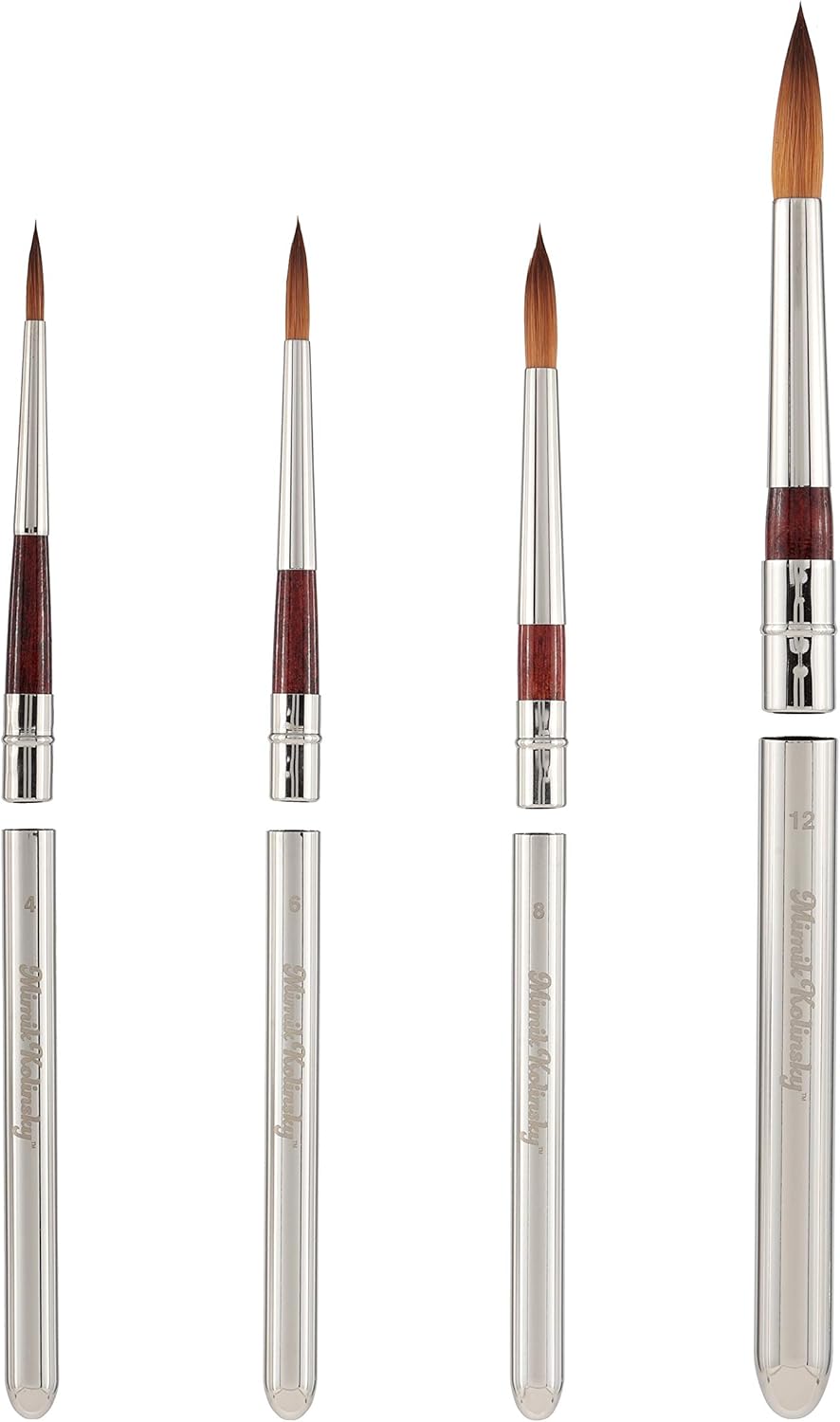 Introducing the Creative Mark Mimik Kolinsky Synthetic Sable Short Handle Paint Brush, a must-have for professionals and artists seeking the perfect sable brush set. This collection of watercolor brushes is designed to meet the highest expectations of performance and durability, making it an excellent choice for both seasoned artists and those aspiring to refine their techniques. Crafted with state-of-the-art synthetic fibers, these sable brushes watercolor mimic the look and performance of natural Kolinsky hair. Each brush is handmade in Germany, showcasing impeccable craftsmanship. The resilient fibers are designed to hold color exceptionally well, while the long bristles, sharp point, and full body ensure precision and control in every stroke. This makes the Mimik Kolinsky synthetic sable watercolor brushes a reliable companion for intricate watercolor, oil, and acrylic projects. The Creative Mark Mimik Kolinsky Synthetic Sable Brushes feature a nickel-plated brass ferrule that securely holds the long bristles, preventing any split ends. The wood handle, coated in a rich mahogany finish, is protected by three coats of durable lacquer, providing a comfortable grip and enhancing the brush's longevity. Whether you're using these brushes as kolinsky sable watercolor brushes or for other mediums, you'll appreciate their versatility and soft feel. The synthetic paint brush technology ensures that these kolinsky brushes deliver a performance akin to the finest natural bristle brushes. With a focus on professional use, these sable hair paint brushes cater to the specific needs of artists, offering a split-proof point and excellent color holding capacity. Unlock your artistic potential with the watercolor sable brushes from Creative Mark, designed to elevate your work to new heights. Perfect for creating detailed artworks, these sable paint brushes professional are a testament to innovation and excellence in art supplies.