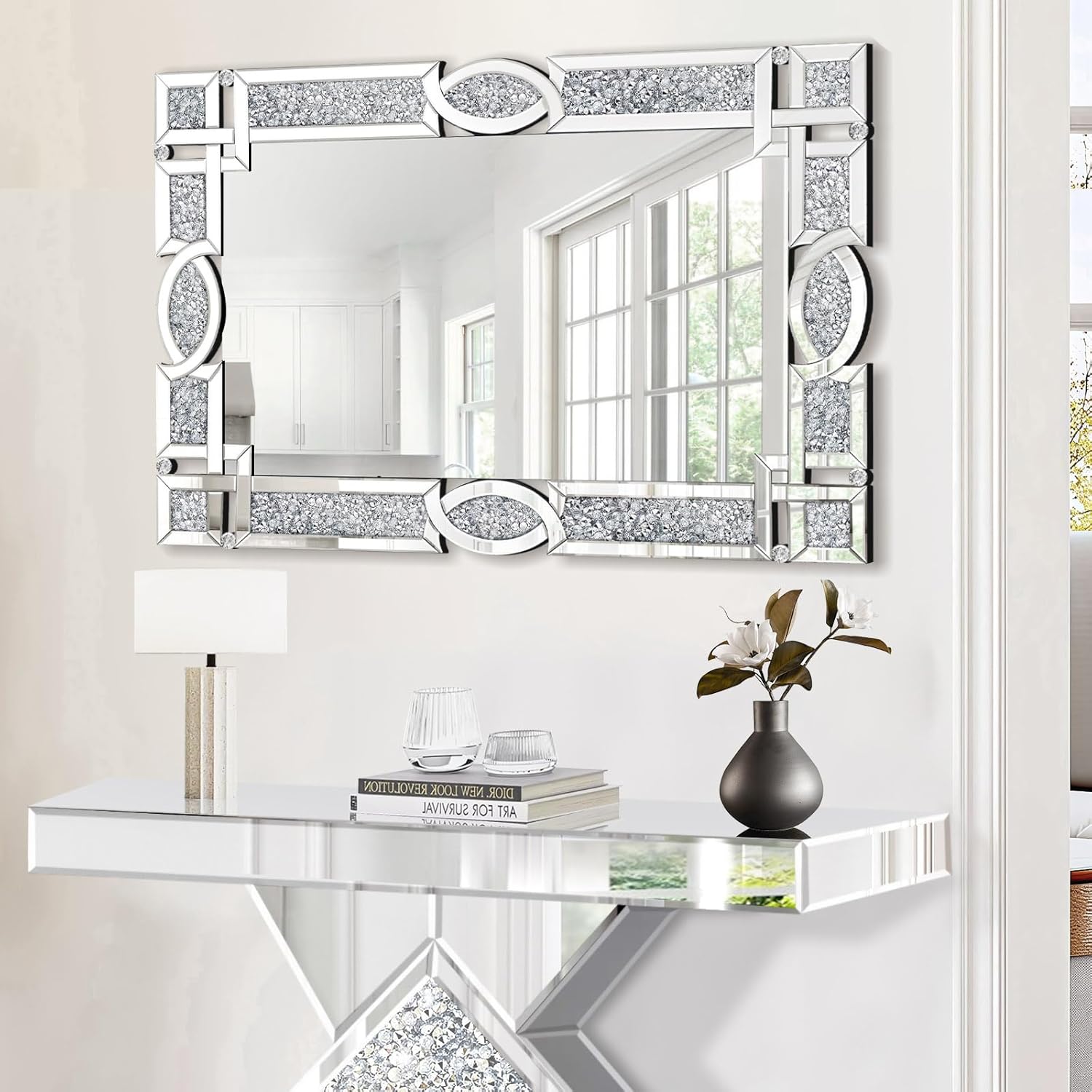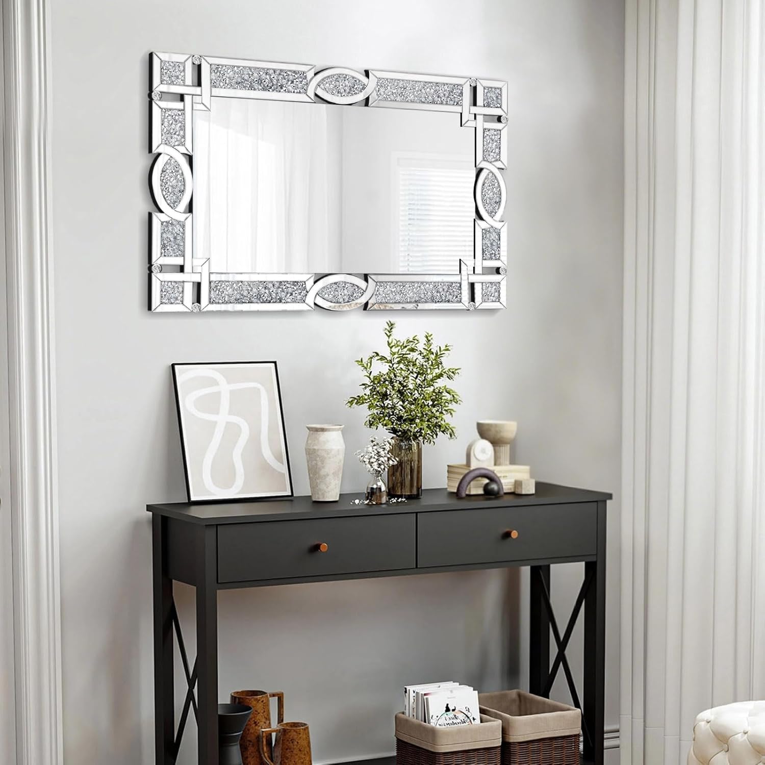 Jesmaikor Crushed Diamond Mirrors for Wall Decor, 36''x24' Rectangle Silver Decorative Bathroom Mirrors, Wall-mounted Mirrors for Living Room, Dining Room, Entryway, Bedroom