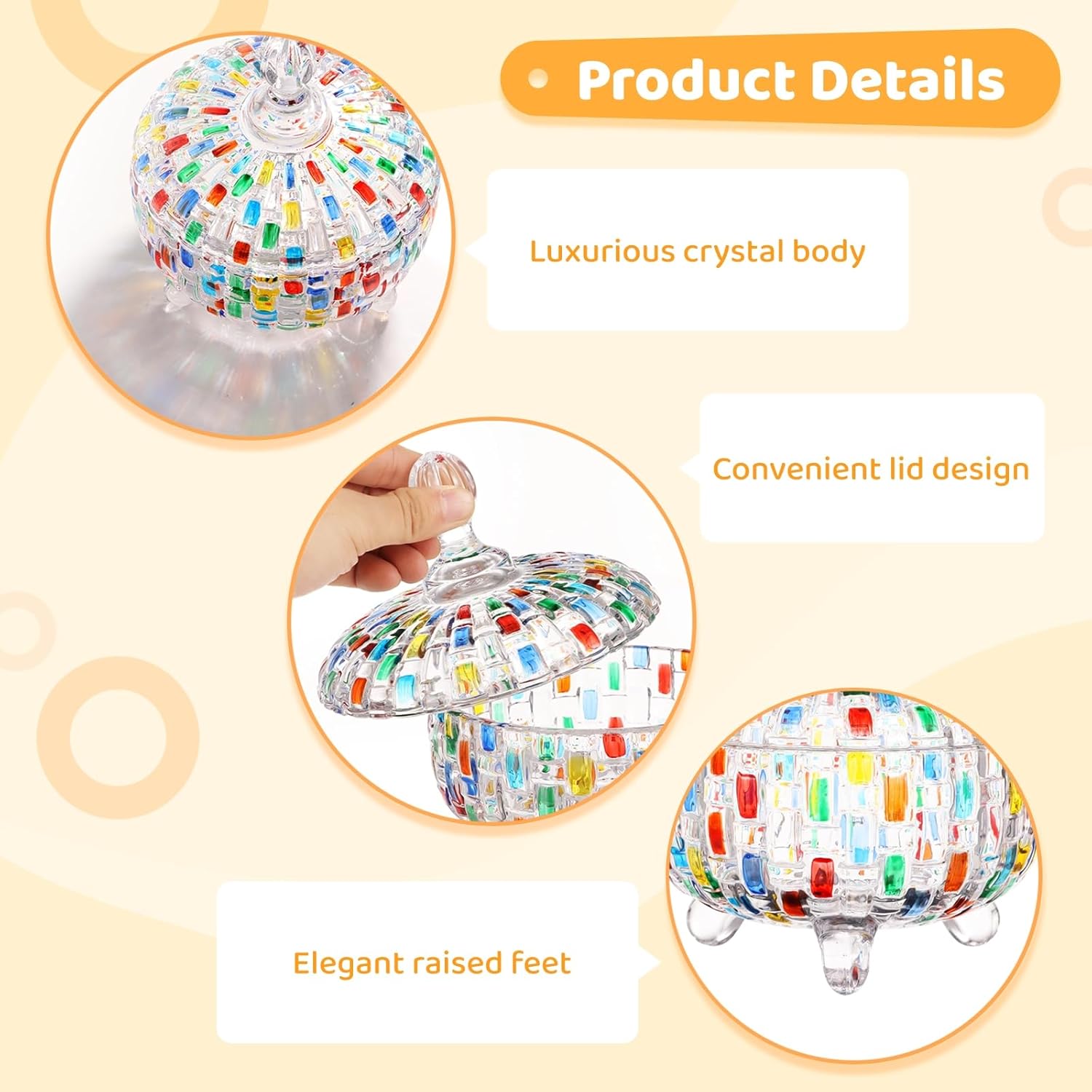 Color:multi-color Material:glass Product Size: 5.9×6.9 in Package Includes:2×glass candy box Note: - Please refer to the measurement. Tiny measuring error is allowable in normal range. - There might be a little color difference due to the monitor, camera or other factors, please refer to the physical item.