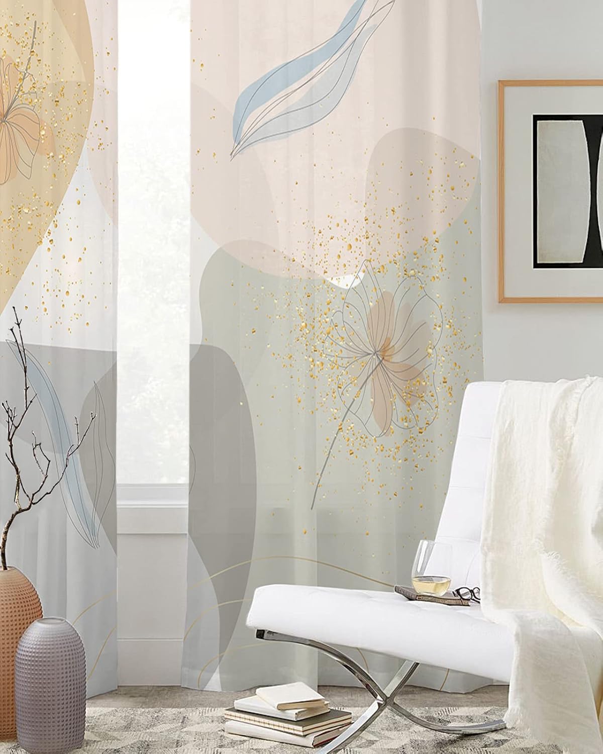 About Chiffon Curtains 1. Chiffon fabric, soft, drape, lightweight, elegant, perfectly balanced softness and texture 2. Chiffon curtains provide enough privacy to the outside world while bringing in natural light and keeping the interior bright 3. With a soft, luxurious drape, sheer curtains bring casual warmth and sophisticated style to your room 4. There are silver metal grommets on the top (1.6 inches inner diameter), easy to install and slide 5. Can be installed in living room, bedroom, dining room, kitchen and office for daily use 6. For proper fullness, the panel should be sized 1.5-2 times the window/opening width 7.Machine washable in cold water, gentle cycle, do not bleach, iron on low temperature if necessary, guaranteed not to fade Specification Packing: 2 pieces of curtain panels per pack - Due to manual measurement, please allow 1-2cm deviation
