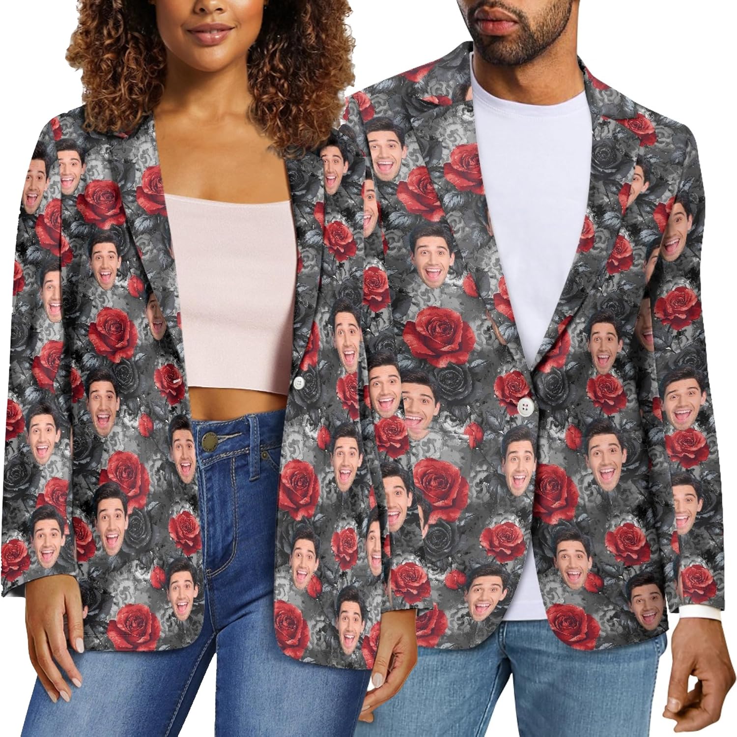 Elevate your couple style with our Custom Face Blazers for Couple! This personalized jacket blazer is a perfect way to showcase your bond with fun pictures that reflect your unique relationship. Made with high-quality materials, these blazers are not only fashionable but also comfortable for all-day wear. Whether you’re heading for a casual outing or a special event, these blazers are sure to make a statement. Surprise your partner with this thoughtful gift that is tailored for both men and women. Ensuring a perfect fit and a touch of individuality to your wardrobe.