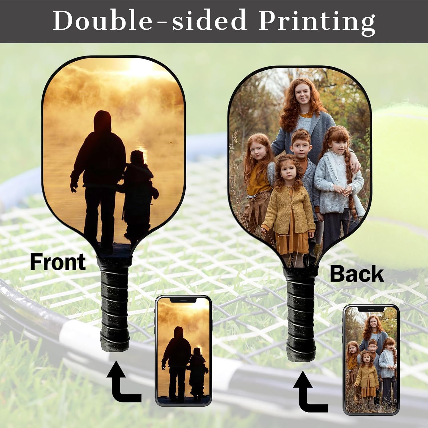 Specifications:Product: Custom Pickleball paddles for all skill levelsMaterial: Fiberglass+PolypropyleneSuitable for: Pickleball paddle is perfect Kit for Beginners & ProsFeatures:Perforated PU soft grip: PU material, perforated surface absorbs sweat and breathable shock absorption, reduces the reaction when the player hits the ball, and increases the friction of the grip.Silicone card sleeve: tight fit, non-slip and comfortable.Octagonal handle cover: absorbs impact force and provides better stability.Three-dimensional spiral technology: non-slip. Specially designed raised texture ensures the best grip when it matters most, and enhances resistance to prevent the racket from slipping out of your hand.