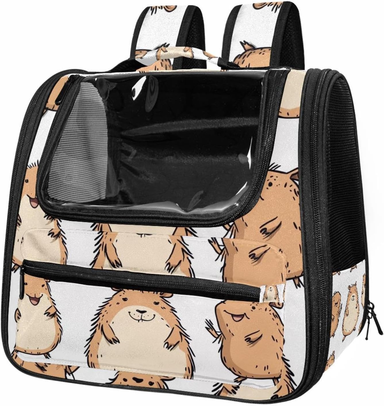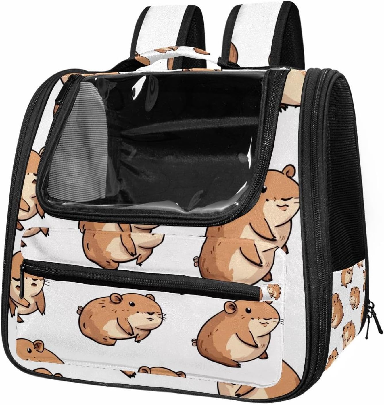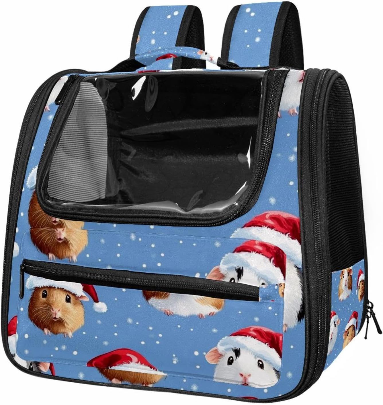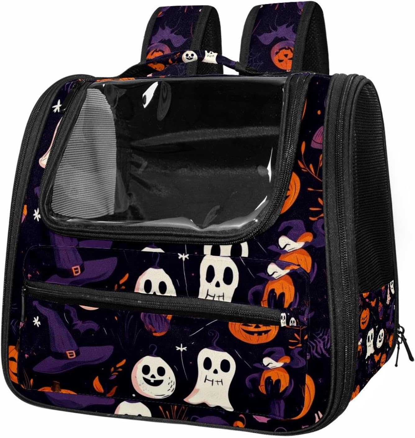 Well made: Cat Backpack Carrier is made from 900D oxford fabric, pp webbing, velvet, nylon, which is very sturdy, environmentally friendly and breathable. Not easily scratched by pet’s claws, pet backpack carrier is SAFETY & ANTI-SCRATCH. The back padding will give you a comfortable and breathable experience. Ventilated Backpack: With a breathable window in the front, this pet backpack allows cats to enjoy the sun without feeling stuffy. There are two side pockets and one big front pocket, and you can take foods or toy for your kitten pet. It is big enough for cat to turn around, and there are side pockets and hook holes, you will enjoy the greatest convenience when taking your cat out. Perfect size: Cat carrier is 15.75x9.84x13.78in/40x25x35cm. Fits most small/medium sized cat, dog, and pet. Quality fleece bed provide a comfortable place for your pet. Lightweight and easy to carry to all places. Built-in harnesses keep your naughty friends from escaping. Removable cosy mat for easier cleaning and let your pet enjoy it inside. Easy to carry: The adjustable shoulder strap of pet carrier bag help you hands-free carrying and makes it the most safe and convenient pet carrier bag for your travel. Seat belt design provide pets with safety protection throughout the trip. Pad protection keep your pets comfortable during travel. Unique Design: Innovative inside graphic design gives you a stereoscopic 3D visual experience. You also send us the photos you interest to make your unique dog or cat carrier. Pet bag is also a amazing gift for pet lover.