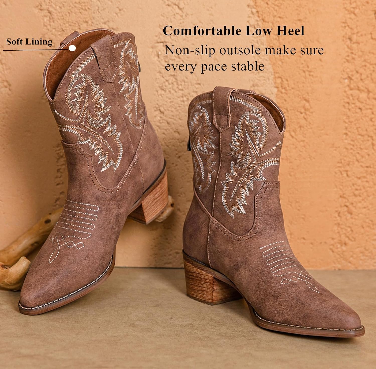 Material: Synthetic leather Sole: Rubber Style: Casual fashion Heel High: About 4 cm Closure Style: Pull On/Back zipper Color:As picture(Black/Brown/Beige) These western cowboy boots are designed with classic embroidered, pull-on style, and square toe, showcasing a classic but elegant western style. The wide calf design can be put on and taken off directly, very easy. Slip into some classic fashion.The cowgirl boots perfect for pairing with jeans, dresses, shorts, showing off western cowboy style, fashion retro classic. Heel height: 1.57"(approx) DADAWEN Shoes Company was a collection of production, design, sales of women's shoes ,Men's shoes, boy's shoes, girl's shoes company. We carries a diverse and wide range selection of the latest trends and hottest a la mode fashion such as Boots, Military Style, Espadrilles, Flats, Lace-Ups, Loafers & Slip-Ons, Pumps, Sandals, High Heels, Platforms, Casuals, Dress Shoes, Oxfords, Bridal shoes and many more.