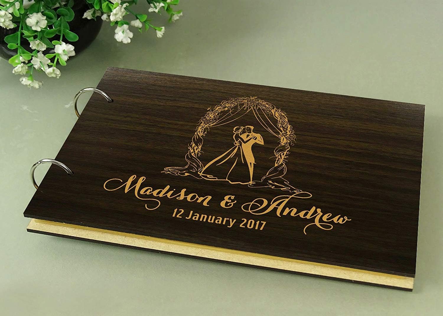 Capture all your precious moments and well wishes with our Wedding Wishes Guest Book. A fun and creative wedding day must have this unique guest book allows all your loved ones to leave an intimate message just for you. This is a beautiful wood engraved book that is as unique as it is timeless. Guestbook cover is made of high quality MDF wood. The book consists of 80 pages (40 sheets) Blank Paper. We offer 3 different color options for your pages i.e White/ Black/ Beige. We offer 2 different sizes in guestbooks i.e 6 x 9 Inches | 9 x 12 Inches. Book is Ring Binded which will help you add or remove extra pages HOW TO ORDER: Select the guestbook in your required size and proceed to checkout. Immediately After placing the order mail us your below customization details Via Amazon E Mails OR alternatively you can E Mail us on DS.darlingsouvenir@gmail.com 1) Names and Event Date (Be very careful with spelling . | First names in the order they are to be used): 2) Pages color (You can choose from White/ Black/ Beige)