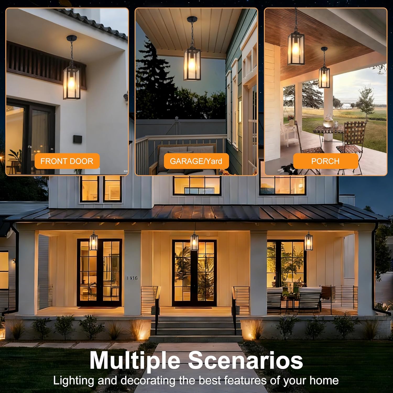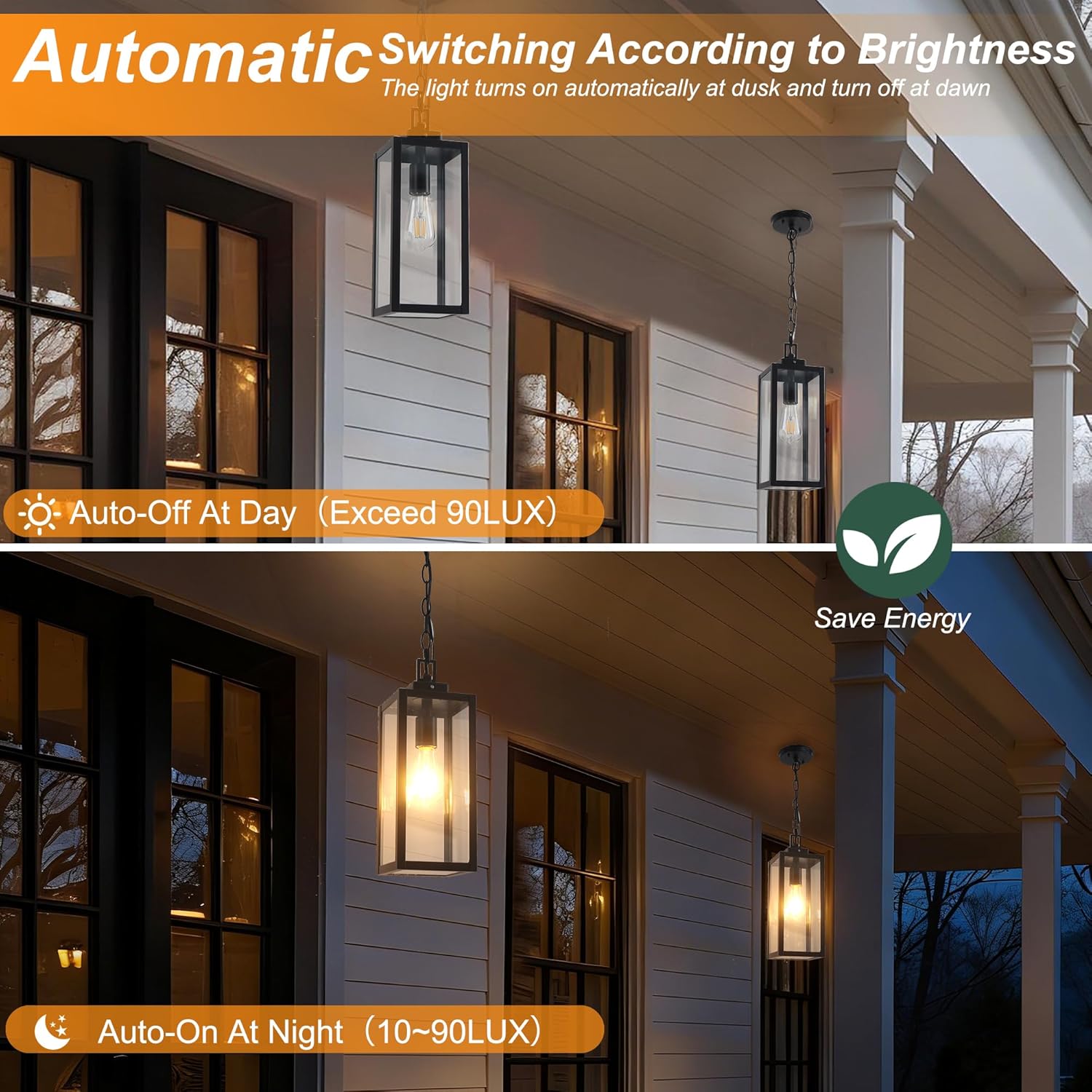 Dawn to Dusk Outdoor Pendant Light Fixture Waterproof Outdoor Hanging Porch Light Anti-Rust Exterior Hanging Outdoor Lantern for Porch Yard Front Door Garage Balcony Patio Garden -2 Pack