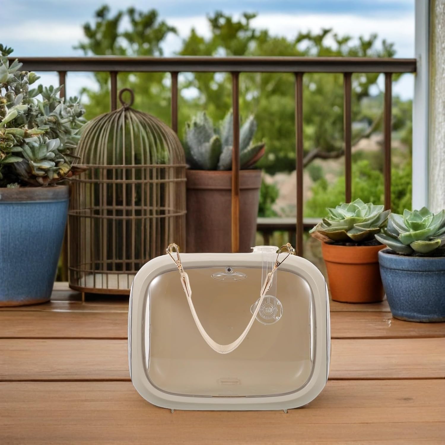 Package List 1 Carrier Cage Features -Effortless transportation: this portable small bird travel cage is designed for easy portability, ensuring your pet bird can be brought on all your journeys with minimal hassle bird carry transport bag -Adaptable functionality: suitable as both a parakeet travel carrier and a bird takeaway cage, it meets the needs of owners looking for flexibility in everyday and travel scenarios parrot cage -Material:Plastic -Size:25.50X20.50X16.00cm/10.02X8.06X6.29in -Color:Beige -Product Info: Parrot out of cage -Low maintenance: effortlesstoclean features make this bird carrier for travel simple to , your bird's the parrot takeout box parrot carrier -Safe for travel: the sturdy build of this parrot carrier travel cage secures your bird, making it a trustworthy bird cages for parrots option during outings or relocations bird carrying bag -Enhanced comfort: integrated ventilation in this parrot takeout cage keeps air moving efficiently, helping birds stay stressfree while using the portable bird travel cage parakeet travel cageGoods Informationportable outdoor birdcage This bird carry out bag and outdoor cage for parrot is crafted for easy transport and ventilation.travel cage for birds Effortlessly use it as a portable pet birdcage or little bird outdoor bag, catering to both short outings and travel adventures.outdoor cage for parrot Its easy-clean design upholds cage hygiene, offering a sanitary environment as your bird’s traveling parrot cage or parrot takeaway cage