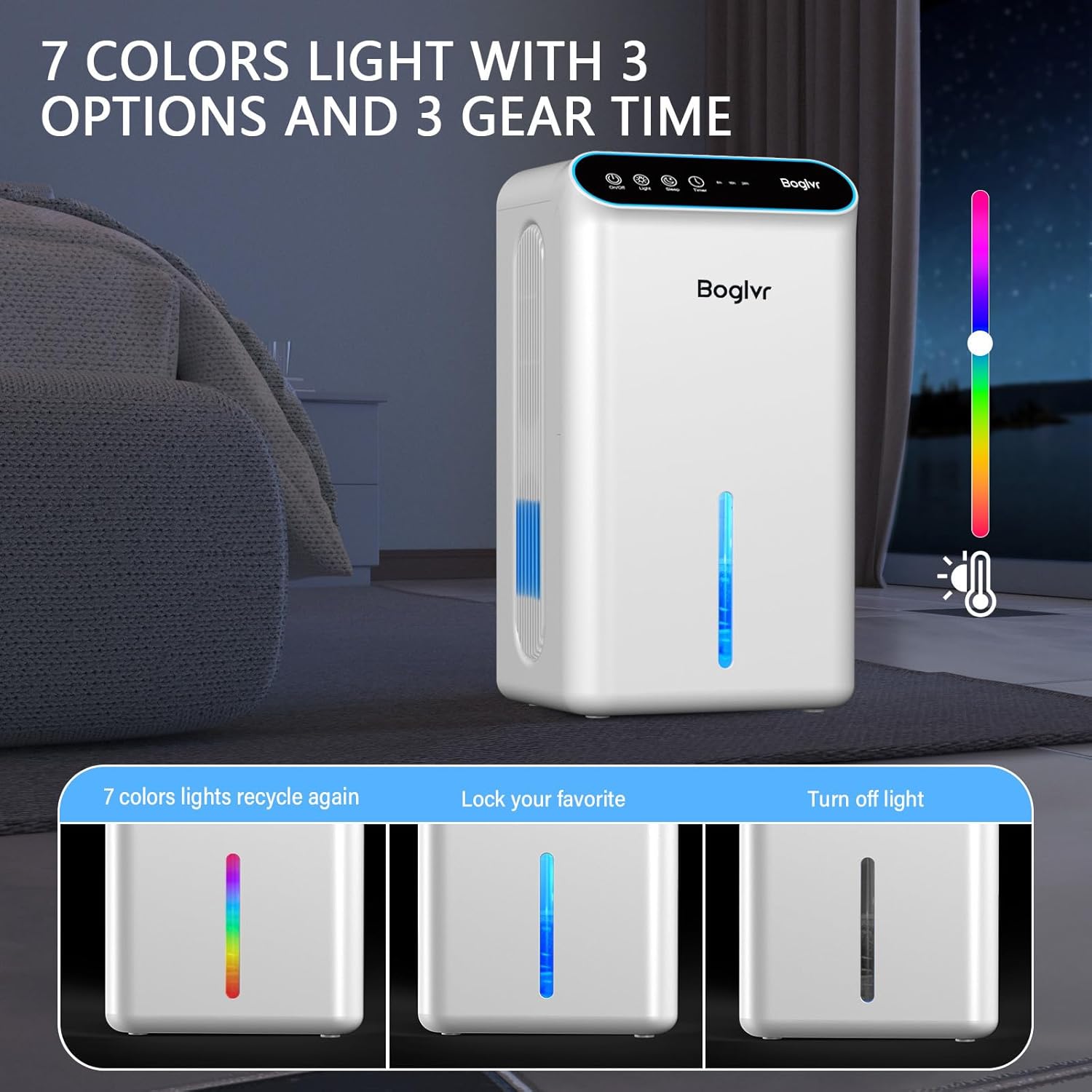 | Other Special Features of the Product | ➤ Powerful Dual-Core Moisture Removal ➤ Whisper-Quiet ➤ 2.5L Removable Tank ➤ Auto Shut-Off ➤ Continuous Drainage with Drain Hose ➤ Sleep Mode ➤ 3 Gear Timer (8/16/24 hrs) ➤ Portable & Lightweight ➤ Reusable Filter ➤ 7-Color LED Night Light |