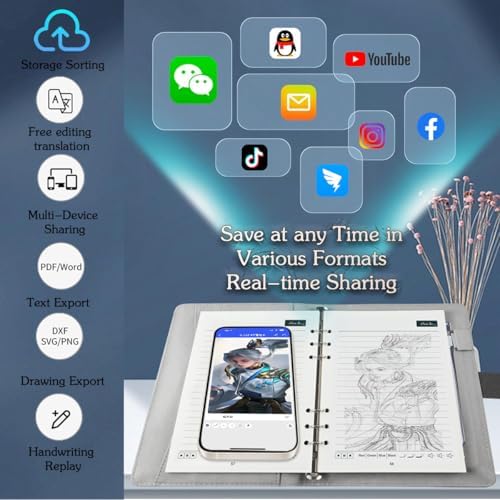 • Digital Notebook for Drawing with Smart Pen: This innovative Smart Notepad combines an A5 Writing Notebook and a digital pen with an intuitive app. Capture your handwritten notes and drawings digitally while enjoying the authentic feel of writing on paper. Perfect for artists and students, it seamlessly blends traditional and digital creativity.