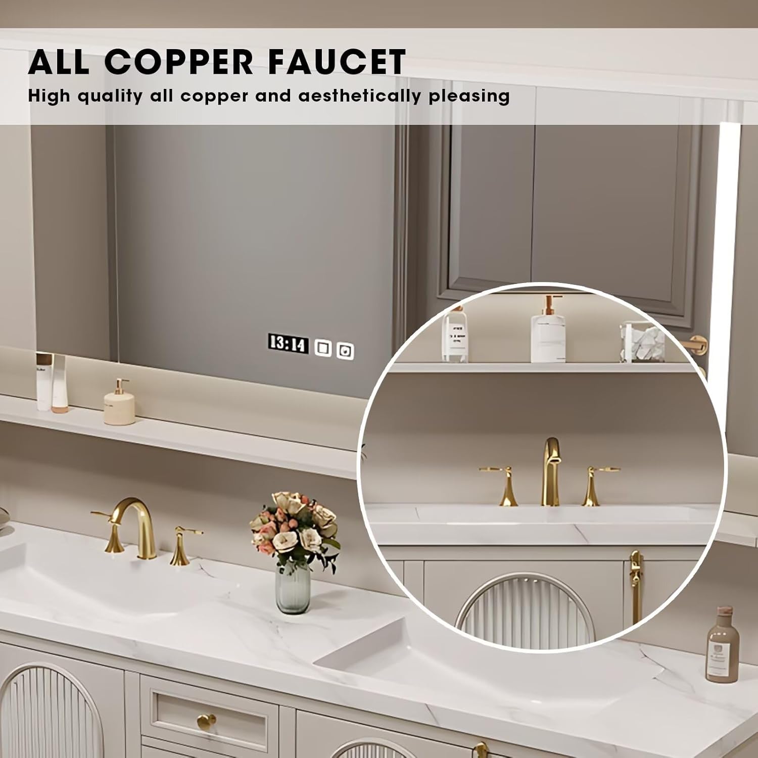 | Included Components | Fashion storage drawers, Large capacity sink vanity surface, Smart mirror cabinet, Faucet |