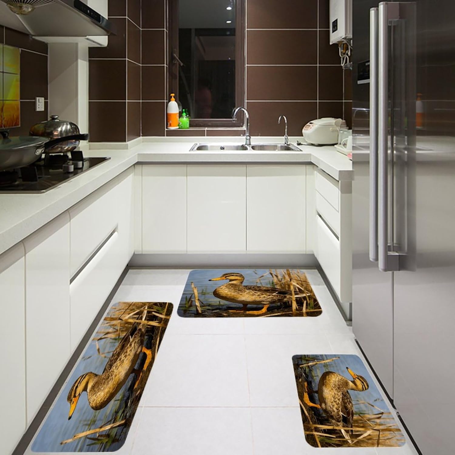 Transform your living spaces with this essential Duck Shadows in The Reeds three-piece set of mats,designed to merge everyday function with effortless style.These washable kitchen mats,crafted from a distinctive Fiber Flannel,introduce a layer of plush softness that welcomes you from the first step.Imagine the comfort of natural,thickened fibers underfoot as you move through your daily routines,whether you're preparing a meal or freshening up.The set's versatile design allows it to adapt beautifully,serving equally well as farmhouse bathroom rugs or soft entryway runner rugs,proving that comfort should have no single address.Beyond their immediate comfort,these mats are conceived for real-life ease and adaptability.As dedicated anti fatigue Duck Shadows in The Reeds kitchen mats for floor areas,they provide a forgiving surface during prolonged tasks.Need a reliable carpet for sink areas to catch drips and spills?This set has you covered.You can freely place them in moisture areas or traffic zones,knowing their performance remains consistent.These are more than mere kitchen utensils;they are subtle yet impactful seasonal home Duck Shadows in The Reeds decor mats.Change the feel of your space by rotating them or moving them from a spring kitchen carpets setup to a cozy autumn nook.Their cohesive look ties different areas together,enhancing the overall beauty and warmth of your interior.Their breathable and gentle texture makes them a reliable companion in any room,offering a consistently pleasant foundation.