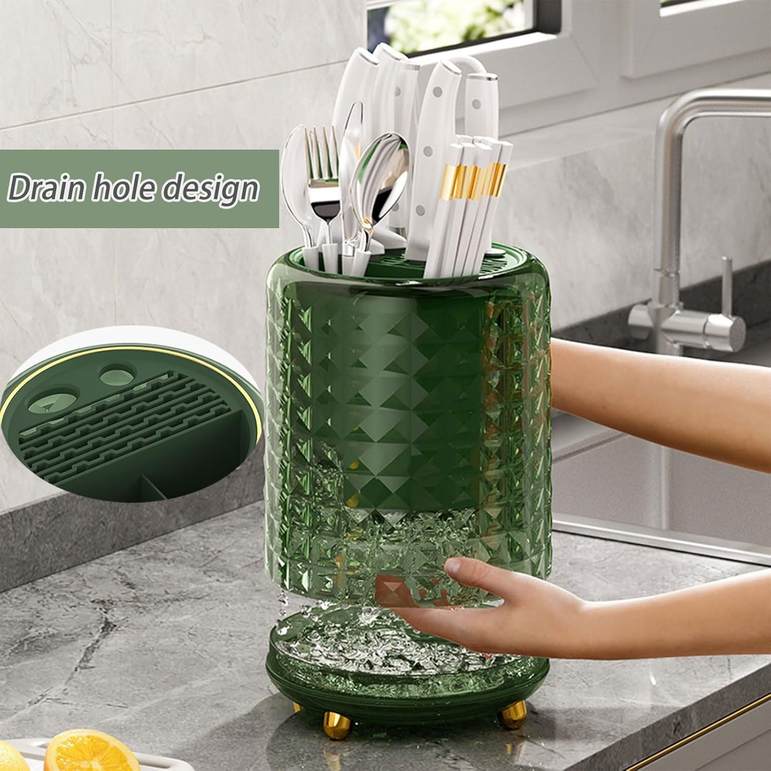 This kitchen rotating storage box is not only easy to access, but the compartment design is very space-saving.The high-quality and solid PP material is not only easy to clean, but also durable. It is a good choice for kitchen storage.Name: Kitchen utensil holderColor: White,GreenMaterial: PPPackage Included: Plastic Utensil Holder x1