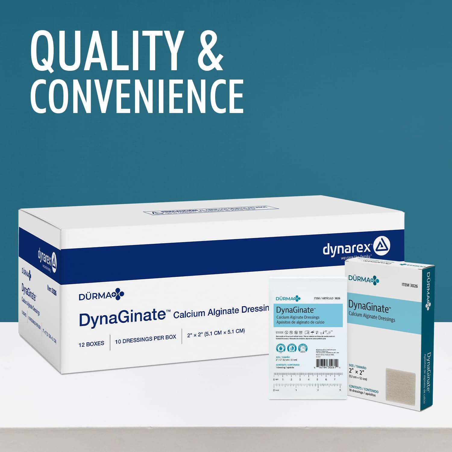 Product Description Dynarex DynaGinate Calcium Alginate Wound Dressing - Sterile, Non-Stick Topical Wound Pads - Absorbent Gel Patches For Moderate To High Exuding Cuts - For Medical & Home Use - 2"x 2", 12 Boxes of 10 Manufacturer Contact Information 845-365-8200