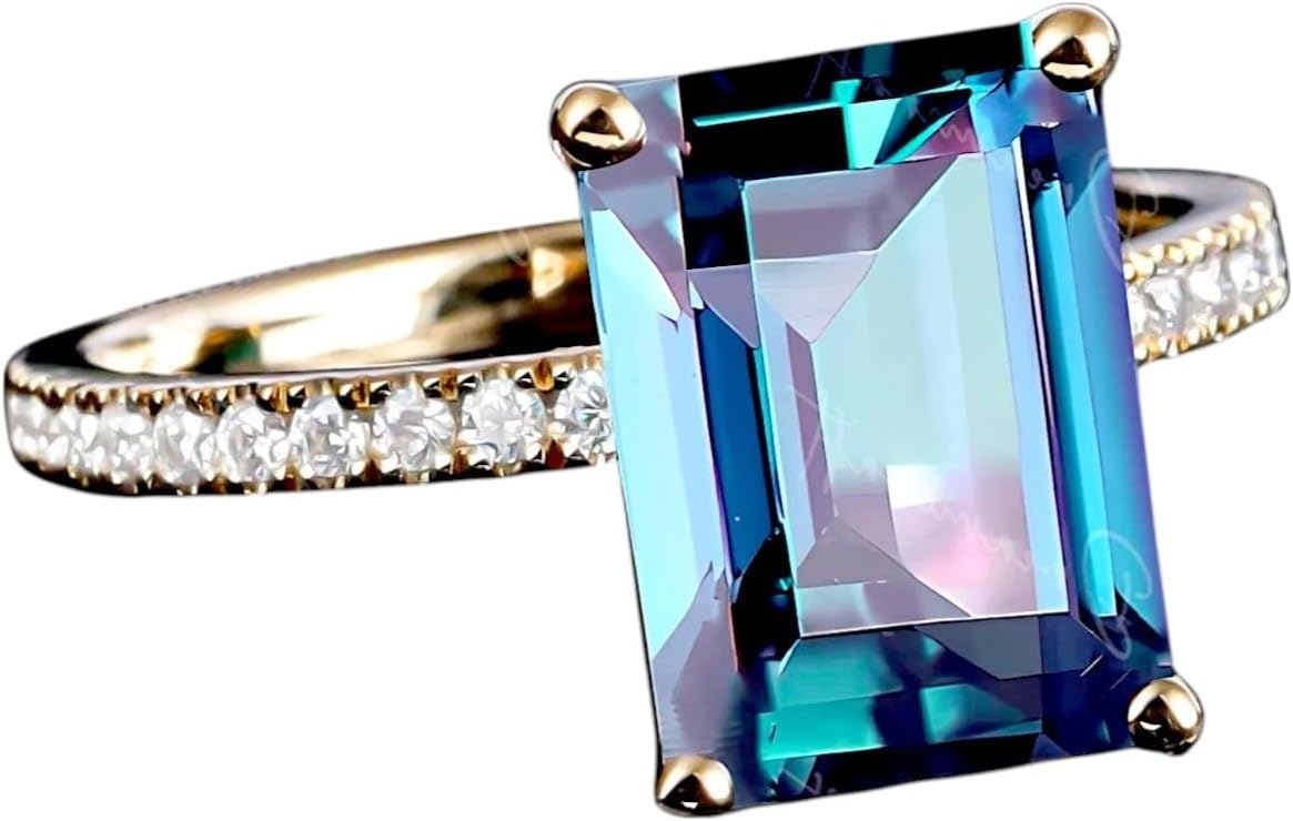 Emerald Cut Alexandrite Engagement Ring โ Color Change Gemstone Ring for Women, Unique Moissanite Cluster Rose Gold Ring, Vintage Bridal Wedding Band, Anniversary Gift Jewelry Gemstone: Alexandrite Gem colour: Purple