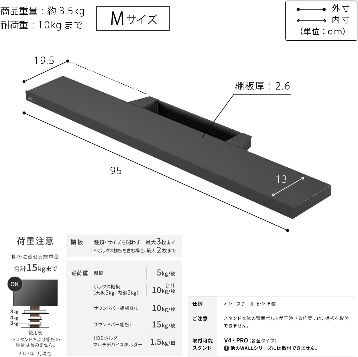 Dedicated soundbar shelf that can be installed at any height Choose between two sizes M and L according to your length.