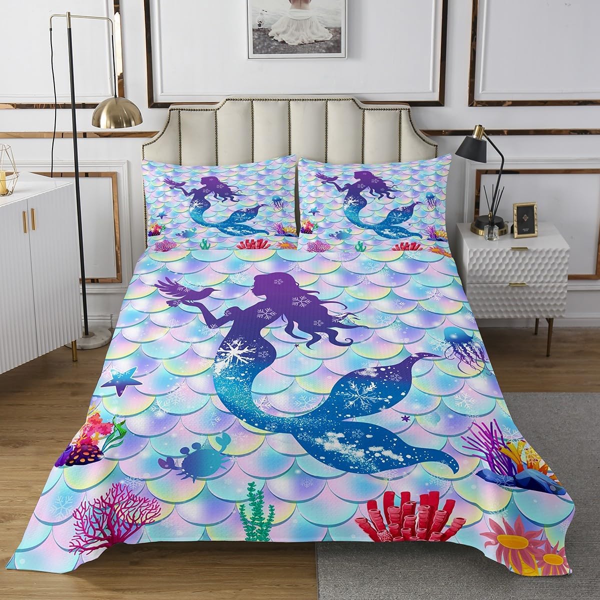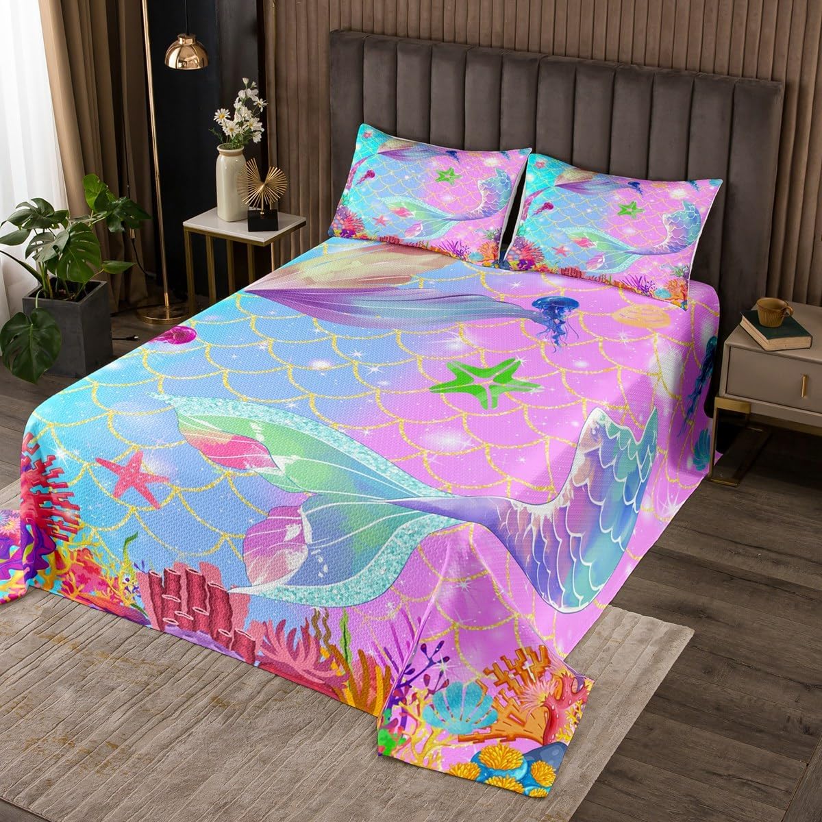 Makeover Your Bedrooms Every Season with Our Bedspread Set,Perfect Quilt Set for Your Room,Girls Boys Youth Room,Master Bedroom. Size Information Twin Size Include 1 Quilted Bedspread(68"Wx90"L) and 2 Quilted Pillow Shams(30"Wx20"L). Queen Size Include 1 Quilted Bedspread(90"Wx90"L) and 2 Quilted Pillow Shams(30"Wx20"L). King Size Include 1 Quilted Bedspread(104"Wx90"L) and 2 Quilted Pillow Shams(36"Wx20"L). A Luxurious Product for Homes,Dorm Rooms,Hotels,Guest Rooms.Practical to Use for Being Polyester,Feels Like Cotton Which Is Super Soft and Breathable.No Chemicals Used,No Dye Substance Harming The Health of You or Your Family. Vivid Colors Won't Fade Thanks to New 3D Digital Printing Methods.These Unique Designs Coverlet Set Match Well with Various Color Palettes of Your Rugs,Curtains,Headboard,Furniture,and All Other Decor Accessories. As Manufacturers of Digital Printed Home Textiles,We Follow Current Trends and Bring You The Latest Home Fashion. Either to Your Family,Friend,Relative,Boyfriend Girlfriend,Your Mom,Dad,Sister,Brother,Grandma,Wife,Husband,Daughter,Son and All Other Beloved Or to Yourself,The Item Should Be Interesting and Authentic. The Bedspread and Pillow Shams Are Printed on The Front Side Only,The Back of Bed Set Bedding Set Are White Colored.Comforter Is Not Included In The Set. Your Satisfaction Is Our Priority,We Sincerely Hope You'll Love it.