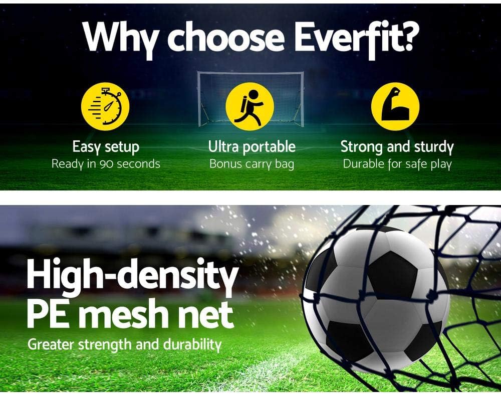 If you love the beautiful game, you will surely love the Everfit Portable Goal. Easy to set up, the portable goal comes with a sturdy powder-coated steel frame and a high-density PE net to practice your free kicks, penalty kicks and more. Get another one and you can have a five or seven-a-aside game in any flat open ground. The frame itself is made with 50% more steel for extra durability. Plus, the four ground stakes ensure that the entire ensemble stays firmly in place with robust play. Not least, you can carry the goal easily to any location for a game with the bonus carry bag. Ready to be the next Ronaldo?Features:Durable powder-coated steel frameFull stability supportLightweightStrong netQuick setupSpecifications:Dimensions: 240cm x 155cm x 86cmFrame material: Powder-coated steelNet material: Quality PE meshWeight: 4kgProduct Contents:Everfit Portable Goal X1Assemble Instruction X1Accessories X1 Set