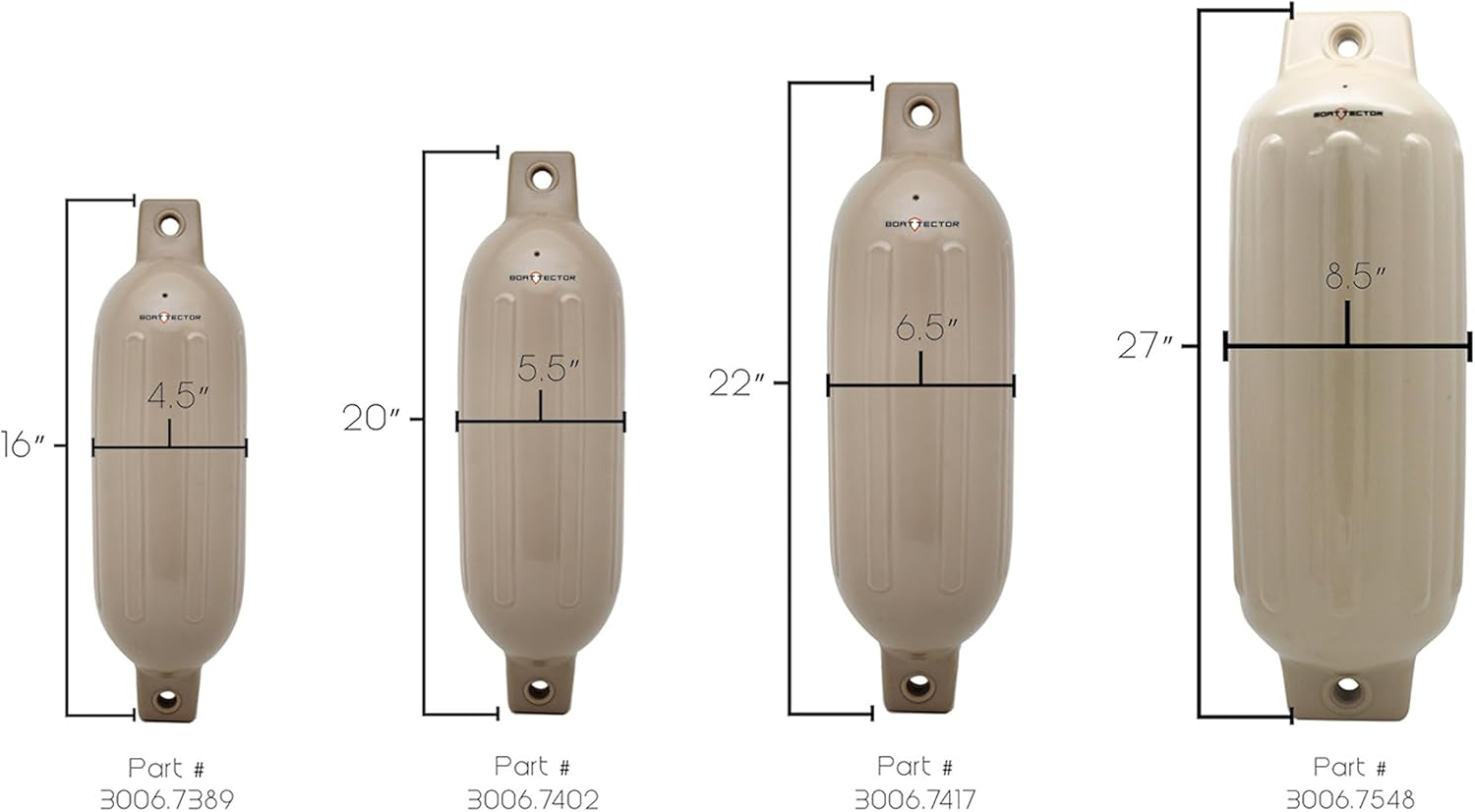 Protect your boat without putting a dent in your wallet! BoatTector fenders offer superior protection for your docked boat, taking the beating of wind and waves so your boat doesn’t have to. The sturdy PVC walls are designed with reinforced ribs and consistent wall thickness for durability and abrasion protection. Each fender is equipped with a needle valve to allowing you to inflate or deflate the fender to the desired PSI and a molded eyelet to ensure fender longevity and strength. Needle valve pump not included.