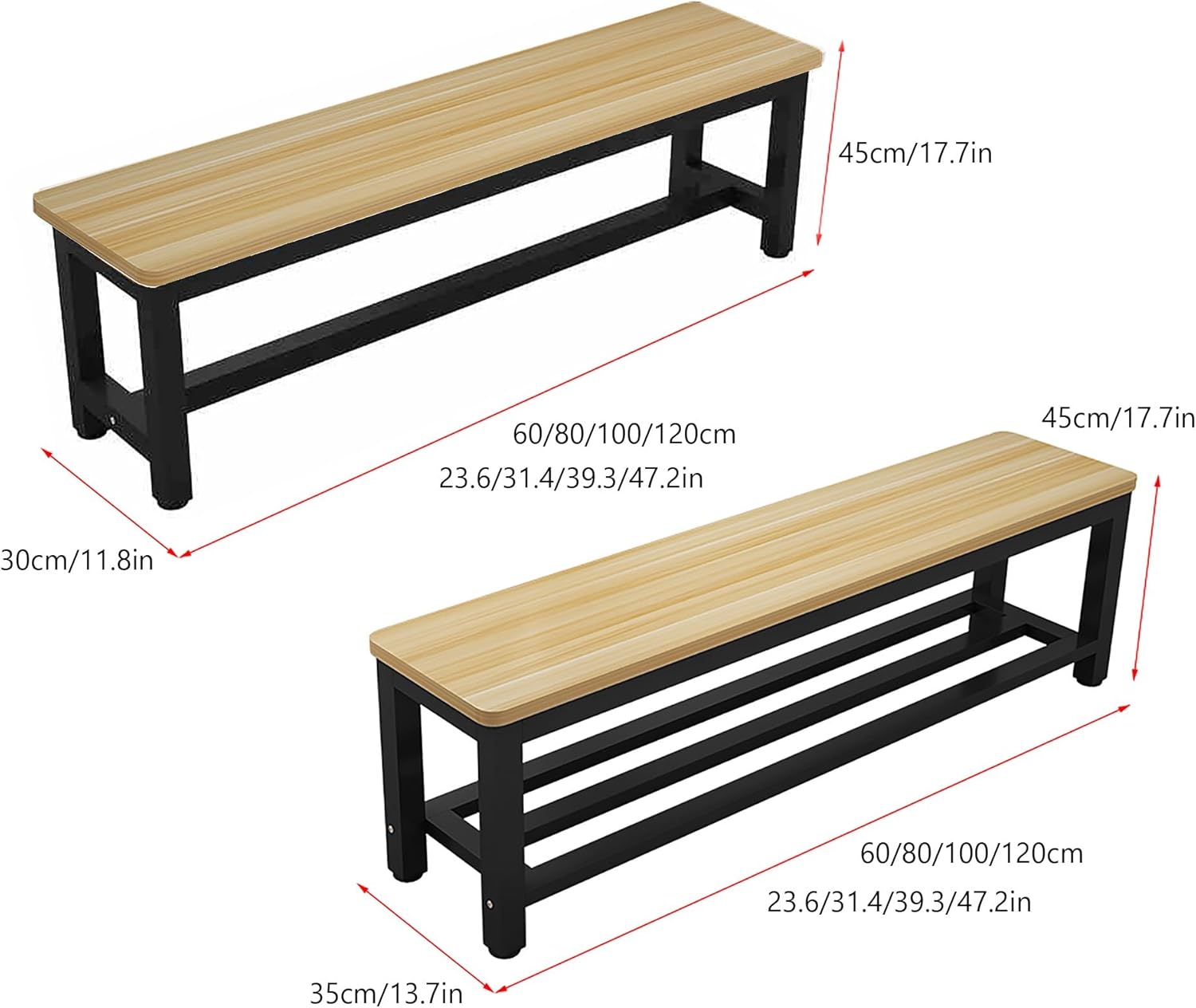 Product Name: Dining ChairsMaterial: Sturdy steel frame and thickened boardFeatures:Reinforced steel frame for added stabilityComfor rounded edges for safetySpacious surface area for storageAnti-slip foot pads to protect floorsVersatile design, can be used as a shoe bench or long benchUsage: Ideal for dining rooms, entryways, or living roomsPackage Includes: 1* Dining ChairsNotes:Easy to clean with a damp cloth.Color may slightly differ due to lighting or monitor settings; actual product may vary.Slight measurement variations may occur due to manual measuring.