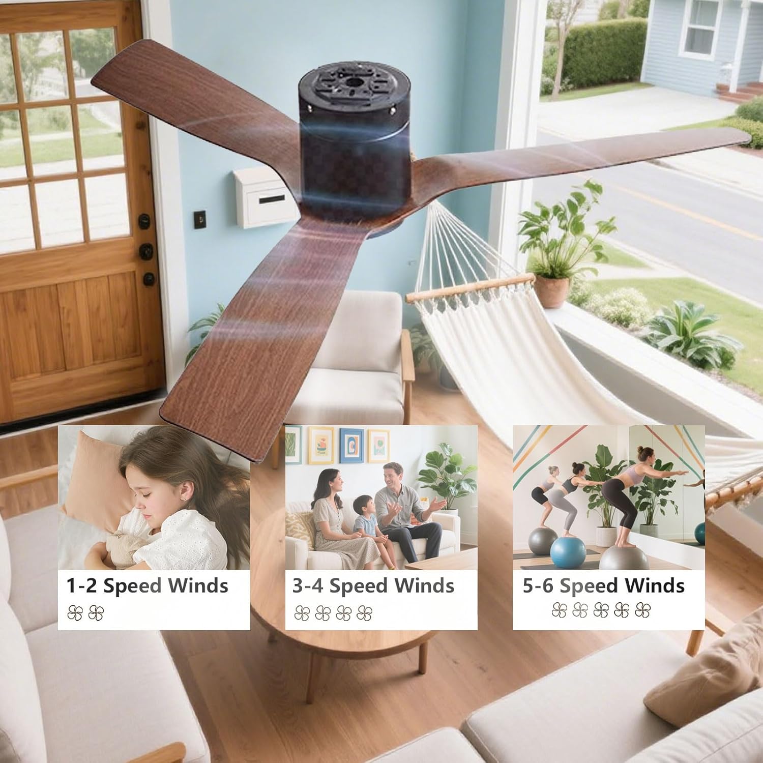 Style: Modern*Remote control: Including RemoteRemote control distance:> 30mrColor: (reference image)*Material: Metal, ABS fan blades *DC Motor*Fan blade: 3 pieces*Wind speed: 6 gear*Whether the wind speed is adjustable: yes (using the remote control, low / medium / high set around the third wind speed)SizeLength: 132CM / 52inHeight: 20CM / 7.9in*Use space: 12-35㎡*The package includes:1 x Ceiling fan1 x Accessories package1 x Remote*Scene: Remote ceiling fan with no light for bedroom, living room, dining rooms, study room, children's room, balconie, small bedroom, corridor, small living rooms, etc.*Tips: The ceiling fan is easy to remove and, clean, when you do the cleaning, cut off the power, please.*If you have any question ,please kindly contact us firstly,we are always here service for you.