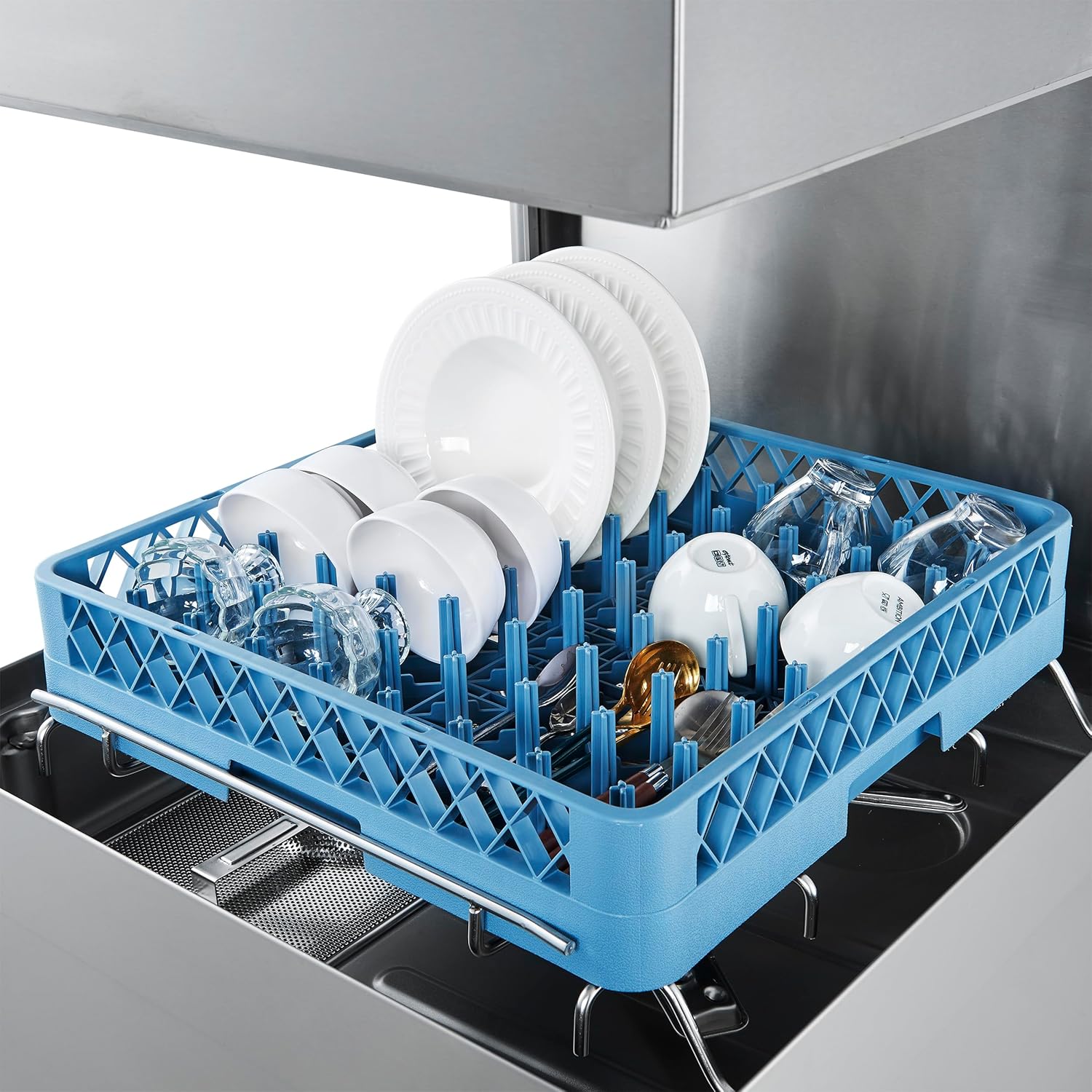The Forno Commerciale Hood Dishwasher is designed to deliver consistent, high-capacity performance for fast-paced kitchen environments. Built with a spacious 26L wash tank, it provides efficient water usage while ensuring powerful cleaning results for every load. The unit supports 50x50 cm racks, offering compatibility with standard commercial dishware systems to keep operations organized and running smoothly. Constructed from SS304 stainless steel, the dishwasher is resistant to rust and corrosion, ensuring long-lasting durability and reliability even under continuous use. The adjustable height frame allows for flexible installation in various kitchen layouts, making it a practical choice for restaurants, hotels, and catering operations that require both performance and adaptability. The Forno Commerciale Hood Dishwasher offers three selectable wash cycles—60, 90, and 120 seconds—giving operators control over cleaning intensity and turnaround speed. Its high-temperature system operates at 55–65°C for washing and 82–90°C for rinsing, supporting consistent and effective cleaning results with every cycle. Designed for ease of use and built to last, this dishwasher combines advanced functionality with durable construction. It helps streamline workflow in high-demand kitchens without compromising efficiency or cleaning quality. The unit measures 28.54 x 32 x 55.12 inches (W x D x H), offering a well-balanced and space-efficient footprint. Experience peace of mind with Forno Commerciale, with each product backed by a comprehensive 2-year warranty covering parts. This assurance reflects Forno’s commitment to reliability, quality, and customer satisfaction in every appliance.