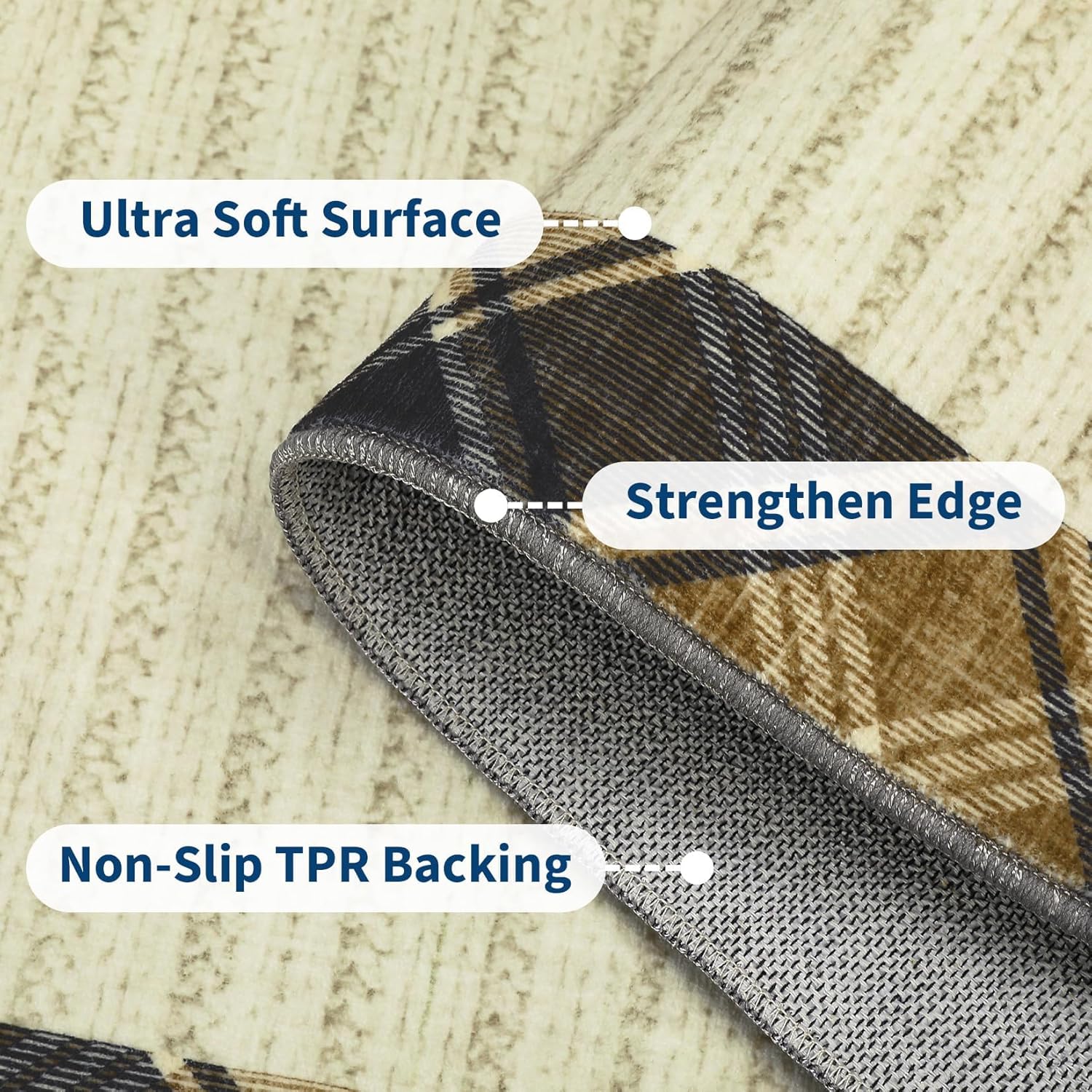 Elevate your home with our washable rugs that perfectly blend retro charm and modern style. Crafted from ultra-soft pearl velvet and featuring a stylish bordered design, these rugs offer plush comfort and sophisticated flair for any room. Highlights at a Glance: - Machine Washable For Easy Care - Soft Luxurious Pearl Velvet - Stylish Retro Bordered Design - Non Slip TPR Backing - Low Pile For Seamless Fit - Durable And Stain Resistant - Perfect For Busy HomesSpecification:Name: Modern rugMaterial: Polyester, TPR backingPacking List:1 x Indoor Carpet Area Rug Usage Tips:1.Before washing your washable rug, gently shake or vacuum to remove loose dirt and debris. Machine wash on a gentle, cold cycle using mild detergent. 2.Avoid bleach or harsh chemicals to protect the fibers and colors. Do not tumble dry; instead, lay flat to air dry to maintain the rug’s shape and softness. 3. Regular vacuuming between washes will help keep your rug looking fresh and prolong its lifespan.