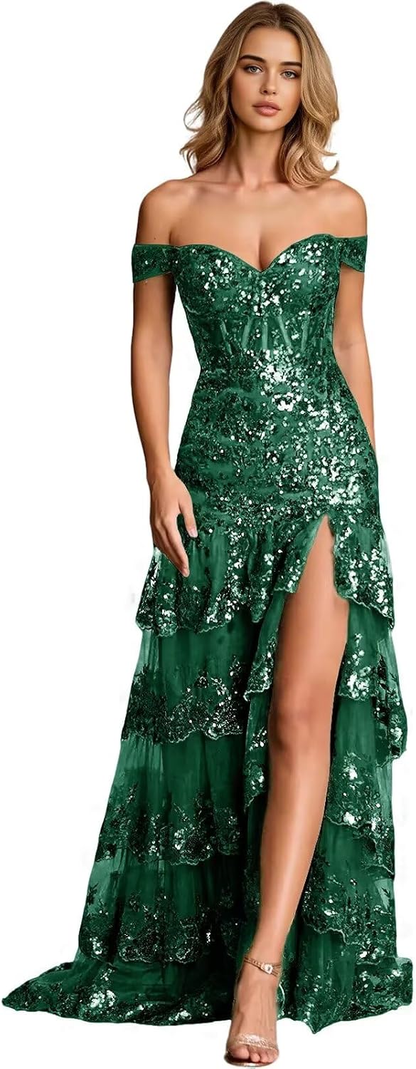 | Embellishment Feature | Corset Back, Hight Split, Lace Appliques, Long Length with Train, Off Shoulder |