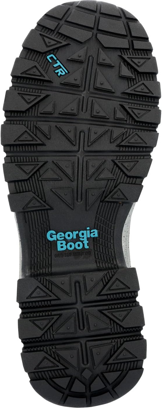 The Georgia Boot Eagle Trail women's hiker boot is great for rugged casual wear or light industrial work environments. The grey full-grain leather upper has combination hardware and a padded tongue and collar. The interior of this 5-inch lightweight waterproof hiker boot is equipped with a waterproof membrane and lined in a high-performance mesh material. The removable insole is made from polyurethane foam that provides both responsive cushioning and shock absorption with each step. Below the insole is a fiberglass shank for added stability and a dual-density EVA and Carbo-Tec rubber outsole with a multi-directional tread pattern. This soft toe work hiker meets ASTM F2892 standards for resisting electrical hazards. Go from work to trail, or trail to work, in the Georgia Eagle Trail women's hiker.