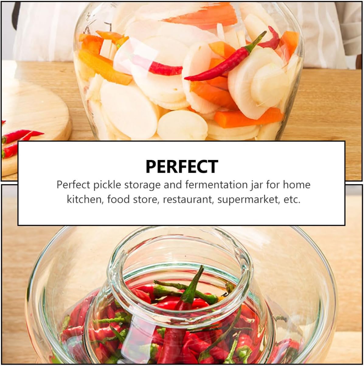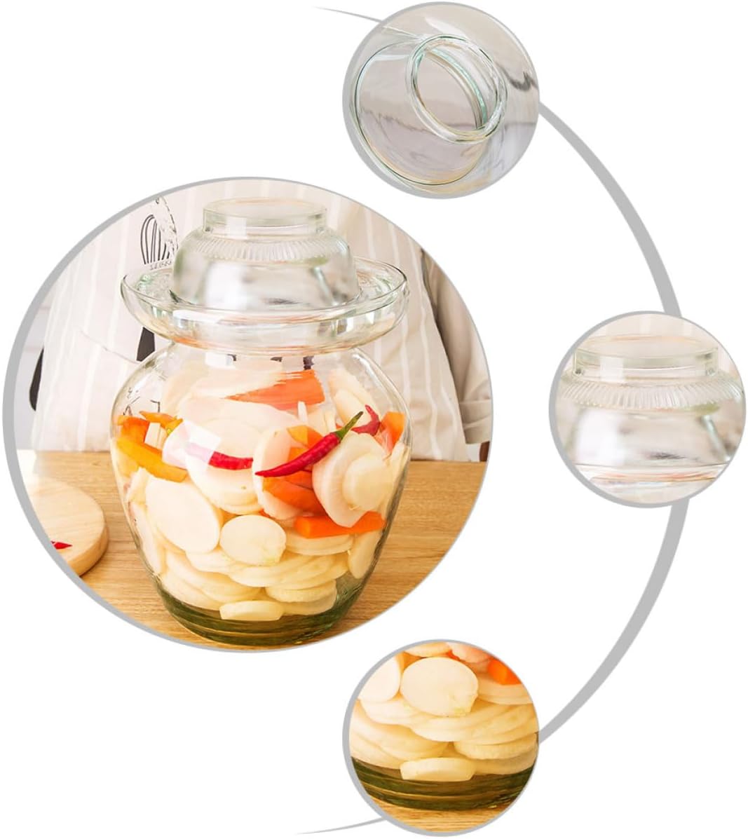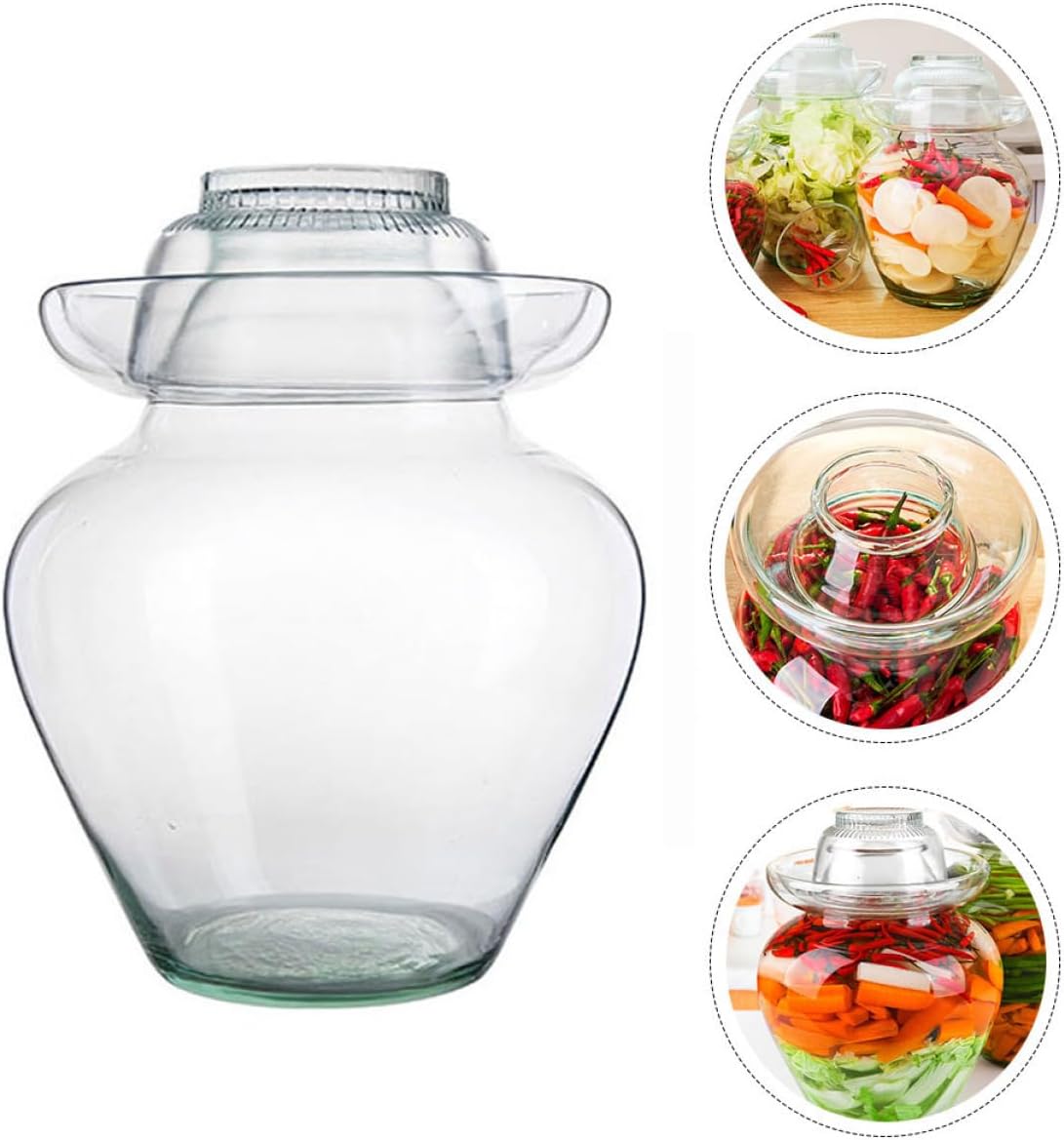 Package Include 1 x jar Characteristics -Color: As shown kimchi jar -Material: Glass, stainless steel, plastic pots -Size: 28.00X20.00X20.00cm/11.00X7.86X7.86in glass jar - Featuring a water seal lid design, this glass jar provide a more reliable sealing effect crock. - This transparent glass jar allows you to conveniently check the status of your pickles, saving more labors jar crock. - With this glass jar, your pickles can keep fresh and taste good for a longer time, you can pride serve your pickles to your family or guest kimchi fermenting jar. - sealing performance to keep food in a good state, allow you to make delicious kimchi jar. - Wide uses, it is suitable for Chinese sauerkraut, ginger, onions, cucumber, beans, cabbage and other pickles you like pickling jar.Goods Descriptioncrock If you are a handmade pickle lover, our jar is a crock for you to make kimchi, Chinese sauerkraut and much more.glass jar crock This glass jar is carefully prevent from any leakage, not easily crack or break, for use