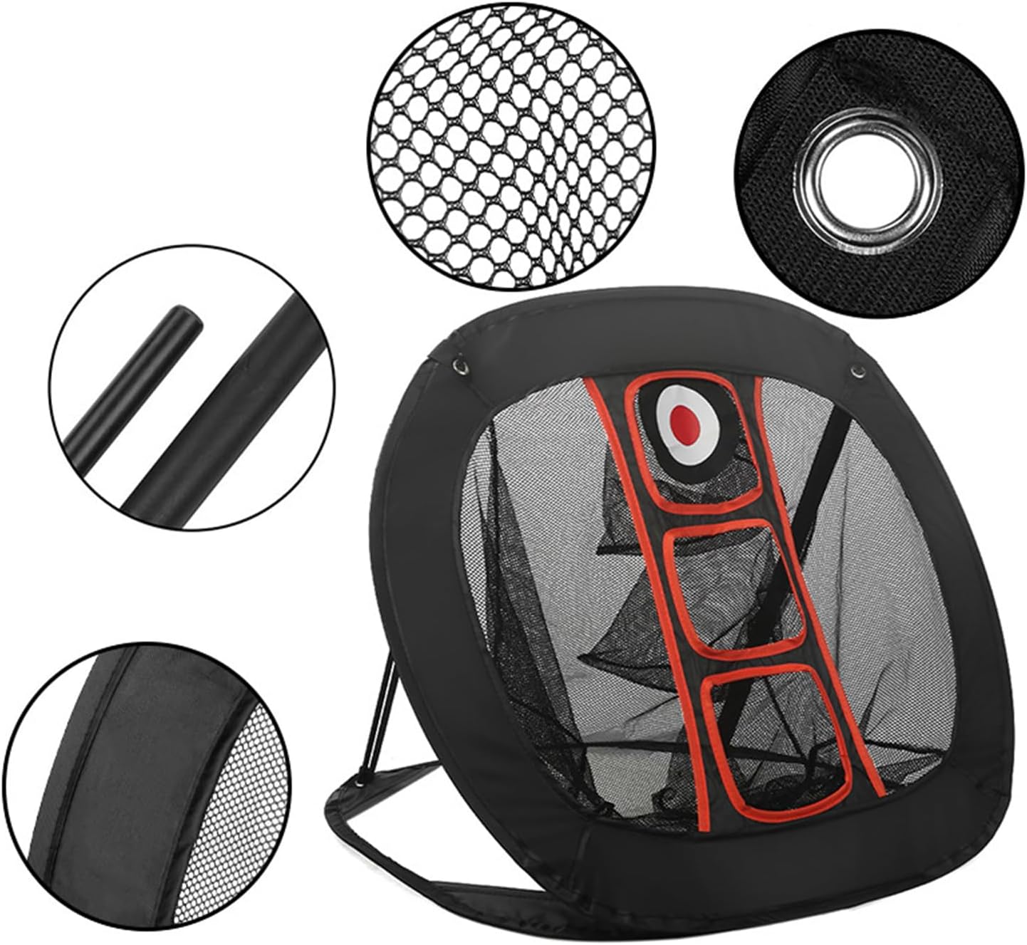 Crafted from durable nylon, the Chipping Target Golf Net Set is designed to enhance your golfing skills with its foldable and portable design. This training aid includes a convenient storage bag for easy transport and setup, making it ideal for both indoor and outdoor use. Perfect for driving, hitting, and swing practice, it helps improve accuracy and distance control for men, women, dads, kids, teen boys, beginners, and seasoned golfers alike. The easy setup ensures you can focus at refining your practice without hassle, whether at home or in the yard. Elevate your game with this versatile golf net set tailored for all ages and skill levels.SpecificationProduct name: Golf NetMaterial: nylonSize: about 70x71x54cm/27.56x27.95x21.26 inchesWeight: 400GListSquare net x1, bracket x4, ground nails x2, storage bag x1orSquare net x1, bracket x4, ground nails x2, three-color folding grass x1, ball x6, storage bag x1Note:1. Due to lighting effects and display angles, there may be color differences in the product.2. Due to manual measurement, there may be errors in product size, please understand.